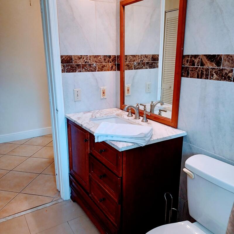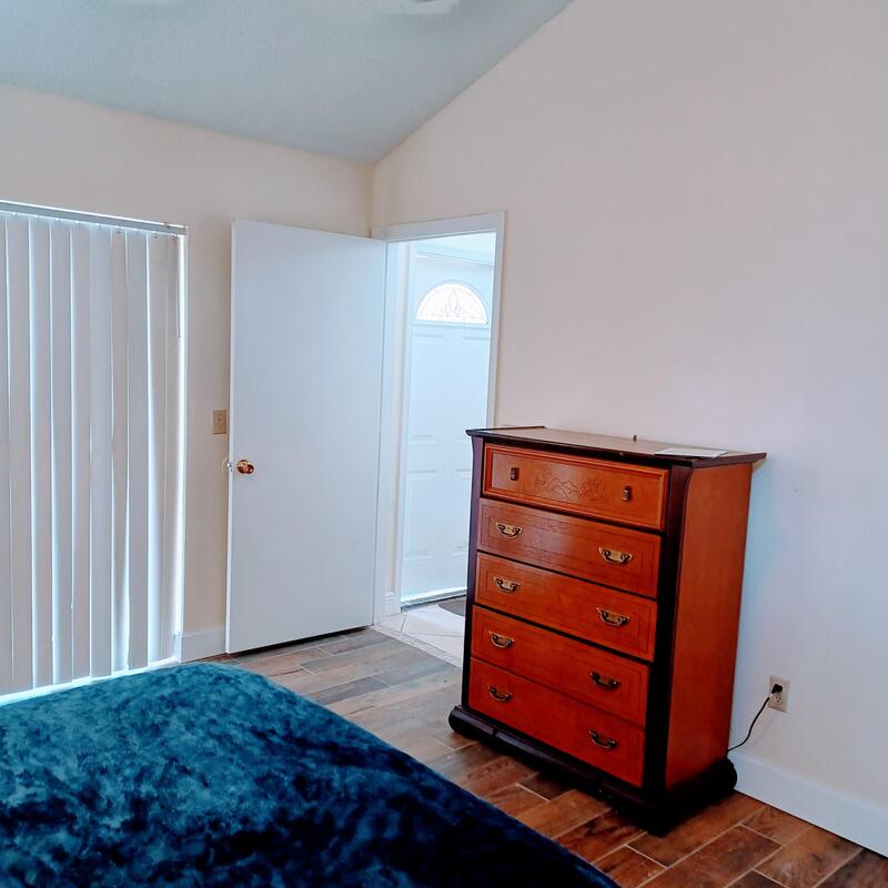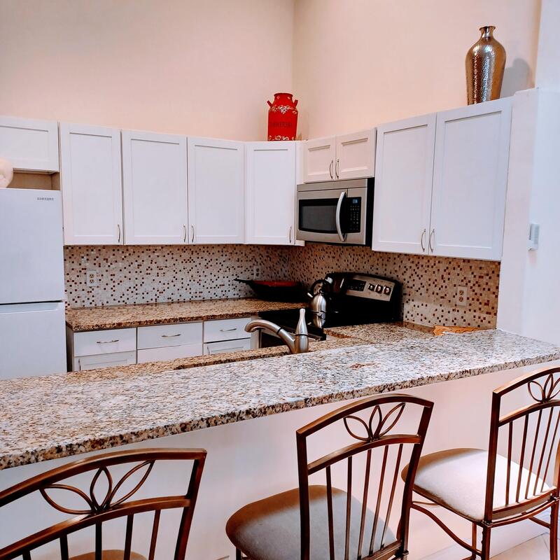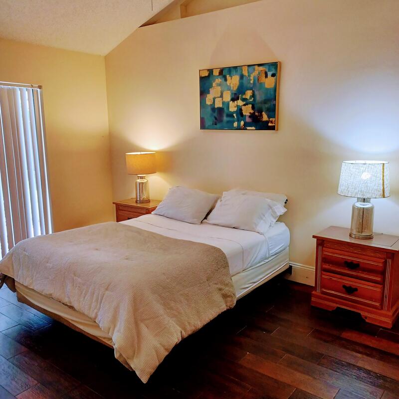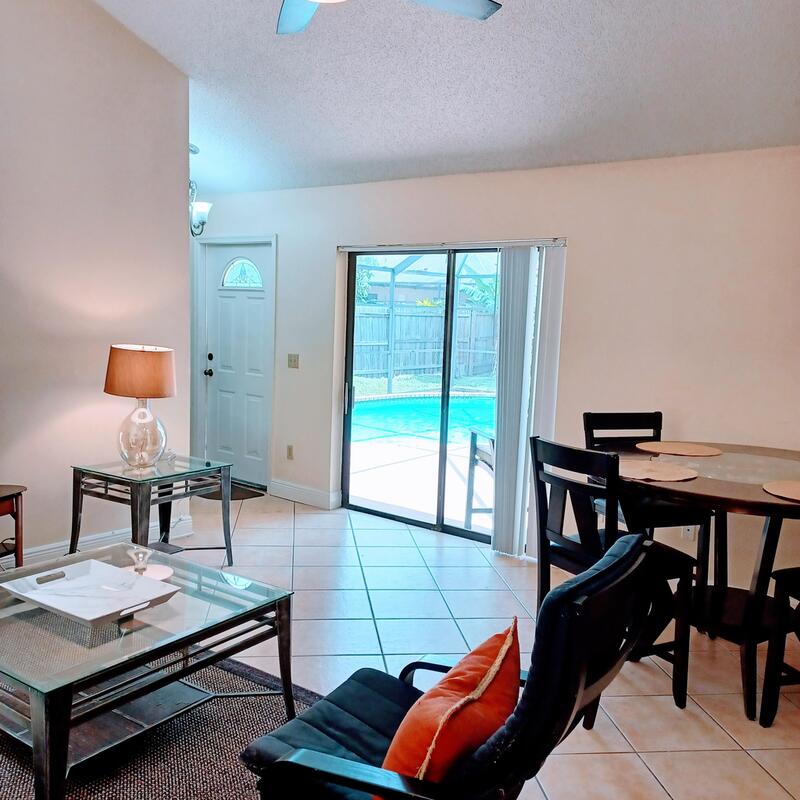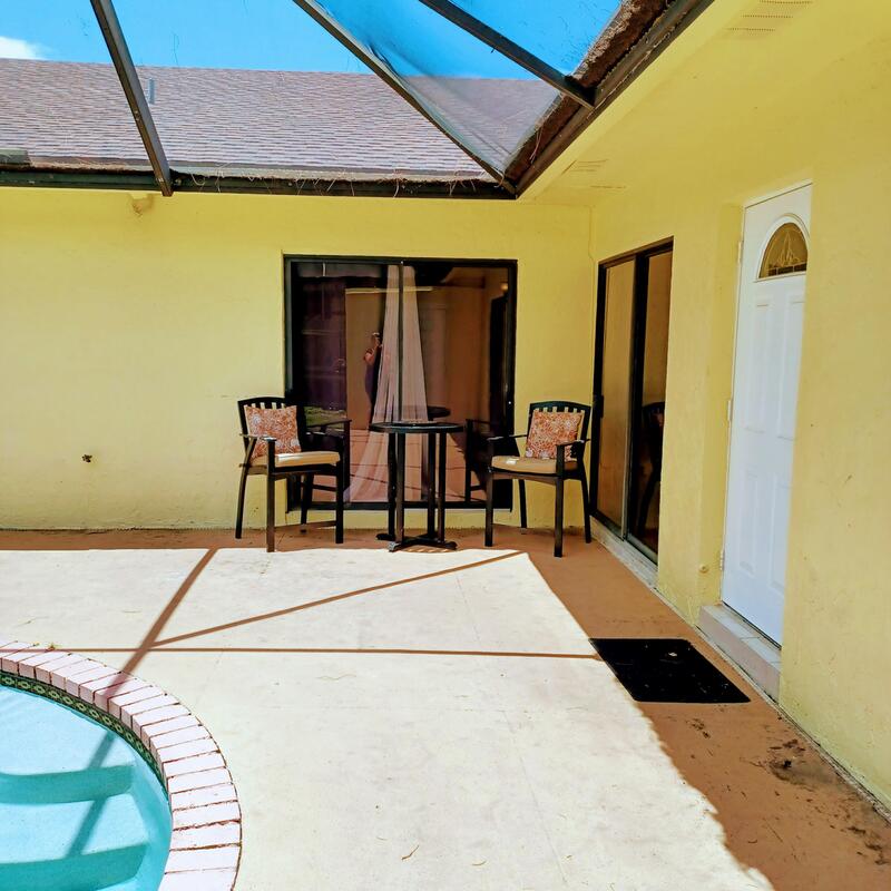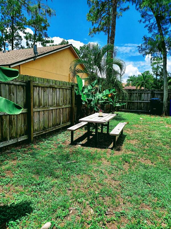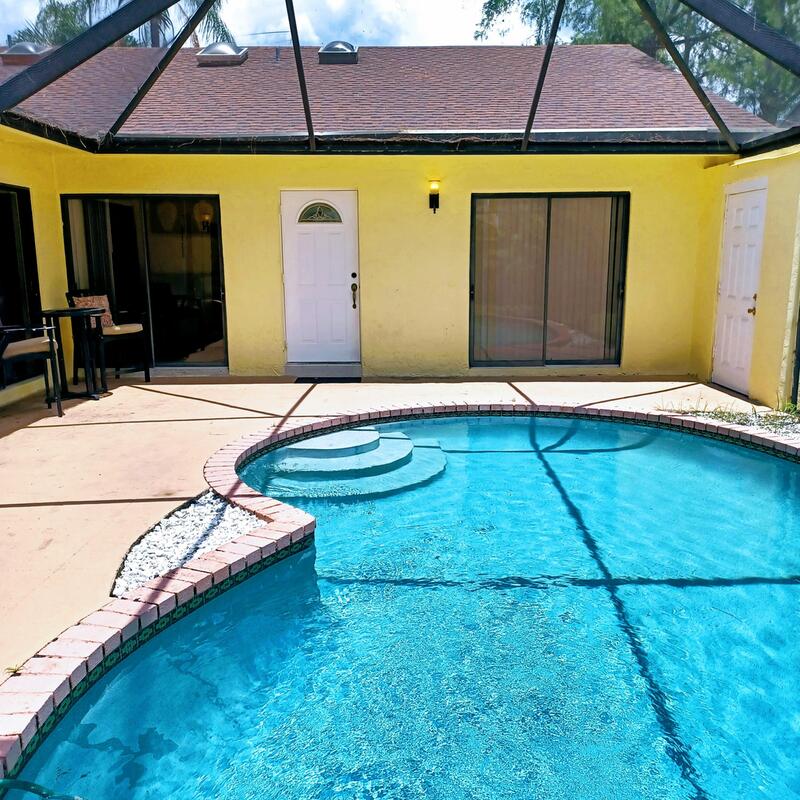 Conveniently located villa with own private swimming pool. Walking distance to 2 major plazas with all kinds of stores including the new Publix. 3 spacious bedrooms with beautiful wood like tile floors. Renovated kitchen with granite countertops and plenty of space to prepare meals. Each bedroom and living room with sliding doors to the swimming pool. Vaulted ceiling and abundant natural light. NO HOA. A fenced backyard with fruit trees