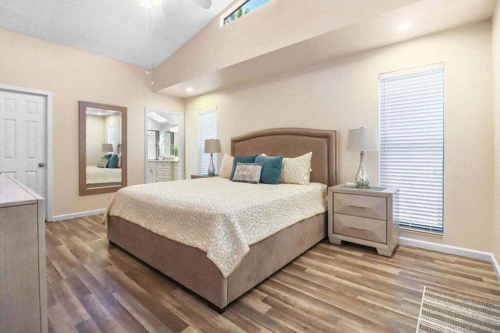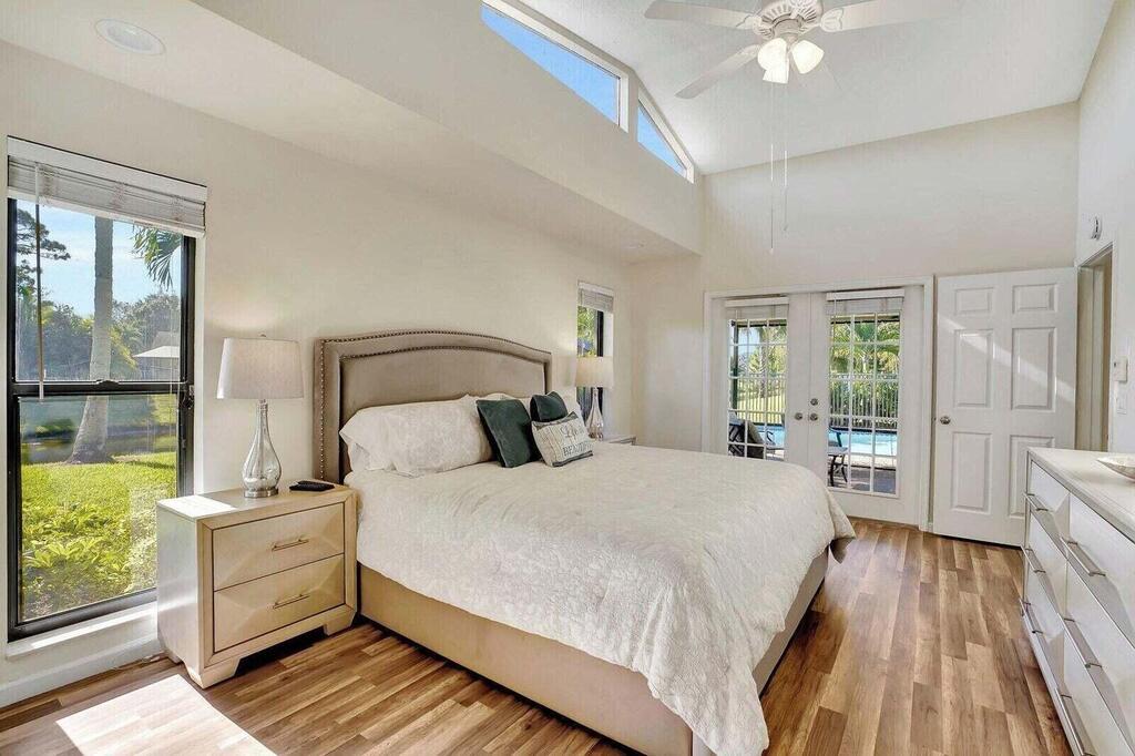 Enjoy this spacious ranch house on a corner lot with a completely fence in backyard space. Screened HEATED In-ground pool, covered patio with outdoor seating areas. Fully furnished including flat screen SMART TV's, WiFi, Water view , fresh linens and a kitchen stocked like your own home. En Suite Bedroom has a King Size Bed, 2nd Bedroom has 2 Queens Size beds and 3rd bedroom has 2 full size beds. All rooms have Smart TVs. Minutes from Equestrian Area, Shopping and restaurants. Convenient to Everything! Heart of Wellington. Pets allowed. Property is available for weekly rentals. Water, Wifi, Smart TV, Weekly Pool Service , Weekly landscaping included in rental pricing . PETS ALLOWED. 90 day rental or annual rental permitted.