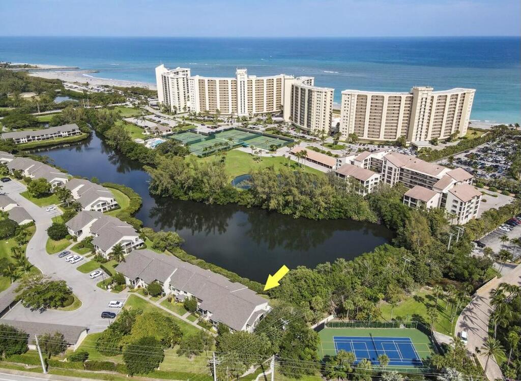 Available for 2026 season $7,500/mo January 1, 2026-April 30, 2026 in Jupiter Dunes. Presenting an exquisite first-floor end unit at Jupiter Dunes, fully renovated to meet modern standards and aesthetics. This home features a wide-open and spacious floor plan, highlighted by a wrap-around patio that offers stunning water views, allowing you to immerse yourself in the true beach lifestyle. Just a short walk away, you can enjoy the sandy shores of the beach and the scenic Inlet Park, perfect for outdoor adventures and relaxation.The property boasts an expansive private patio, providing ample space for entertaining guests or enjoying peaceful moments in the sun.