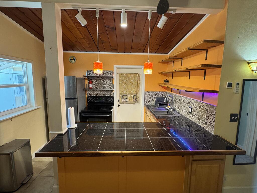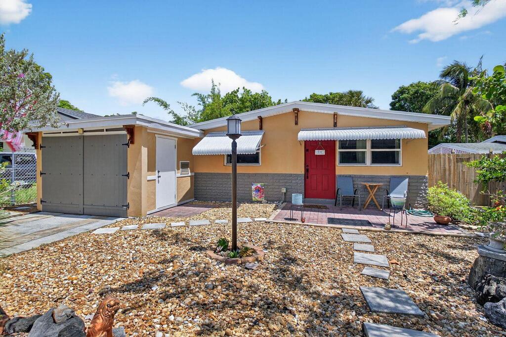 this charming and updated 2bed/2 bath with office home is ideally located just minutes from downtown Boca Raton, Delray Beach. Inside, you'll find a thoughtfully designed layout featuring stained tongue and groove ceilings, impact windows, updated electrical, and three energy-efficient mini-split A/C systems. The home also showcases original tongue-and-groove ceilings, adding warmth and character throughout. The stunning primary suite is a standout, with soaring ceilings, an oversized walk-in closet, and a spacious, serene atmosphere. Outside, enjoy a private backyard with patio, storage and a smoker grill.