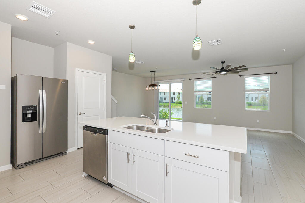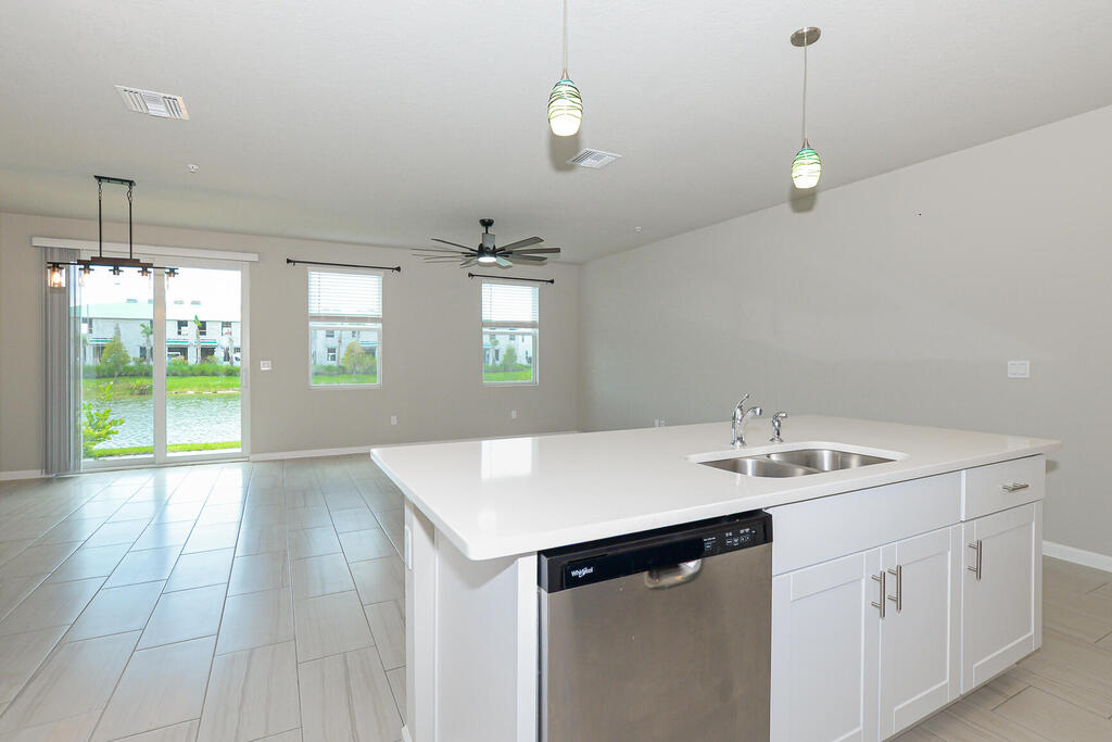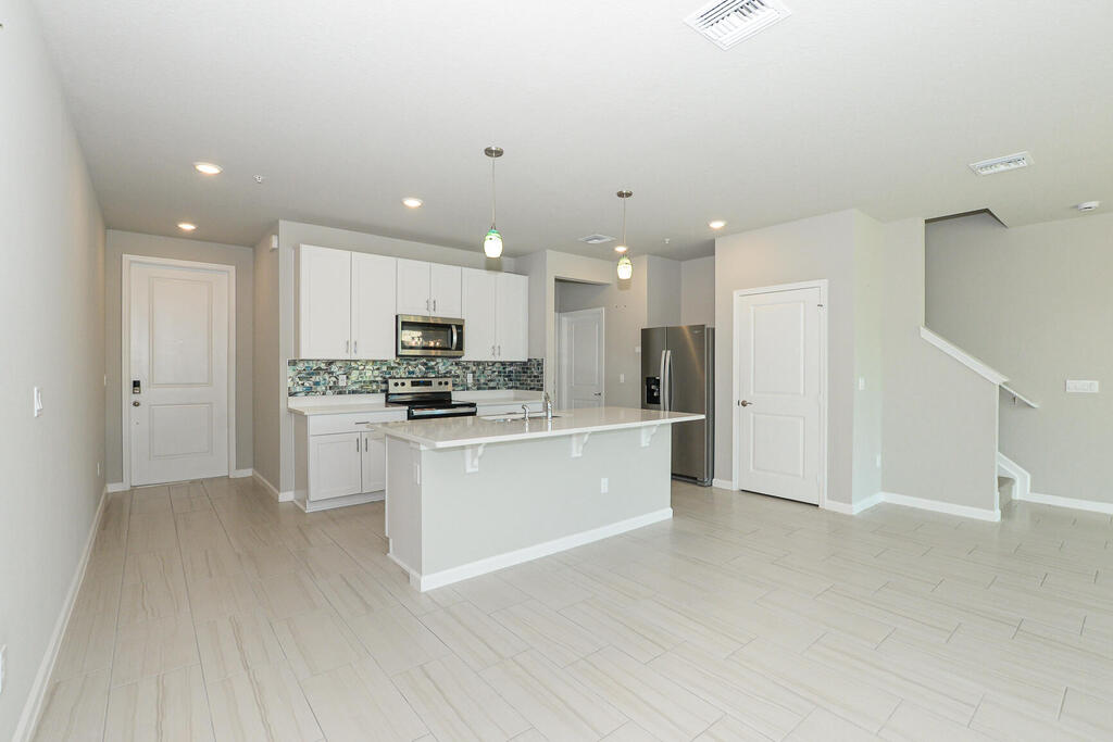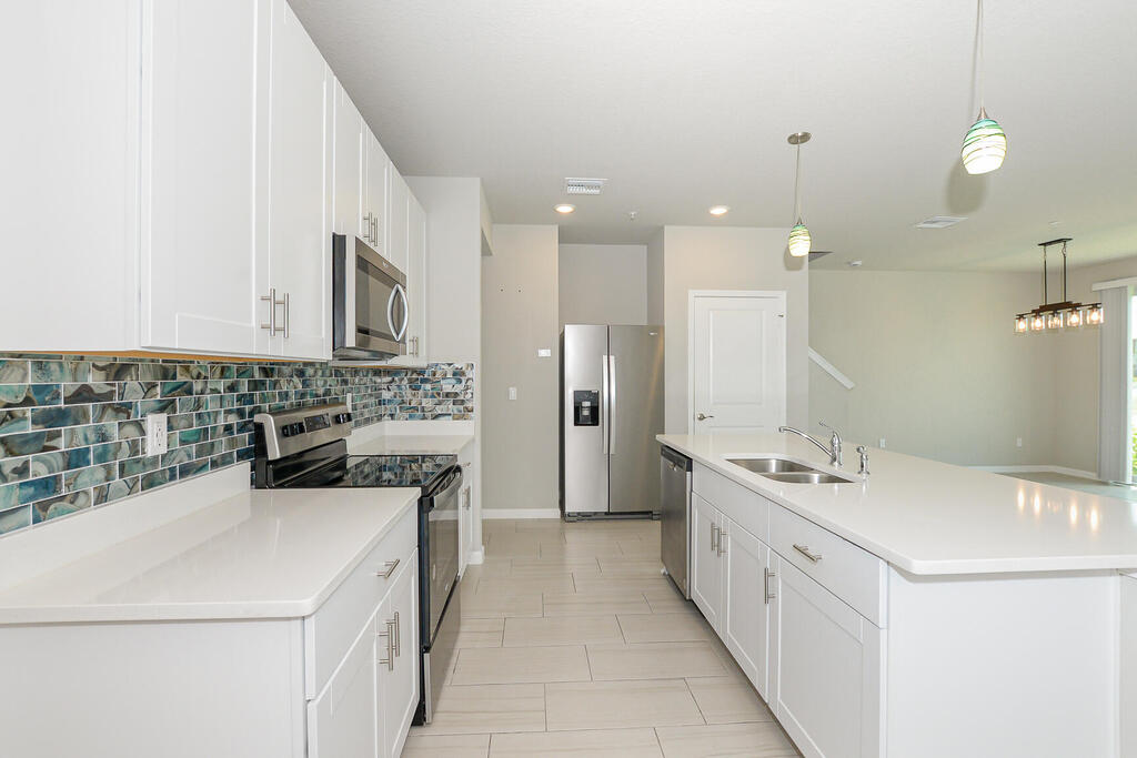 Open layout downstairs blends kitchen, dining, and living; upstairs loft adds flexibility for work or play. The primary suite is spacious with a private bath, while secondary bedrooms share a Jack-and-Jill design. All appliances convey, including washer/dryer and stainless kitchen package. Impact windows and energy-efficient construction offer comfort and peace of mind. Tidewater residents enjoy gated security, sidewalks, and a community pool--conveniently located on US-1 near shopping, dining, and beaches. Sandpiper model in Tidewater, right off Highway 1. This 3BR/2.5BA townhome includes a loft for a second living area, office, or flex space, plus a Jack-and-Jill bath.