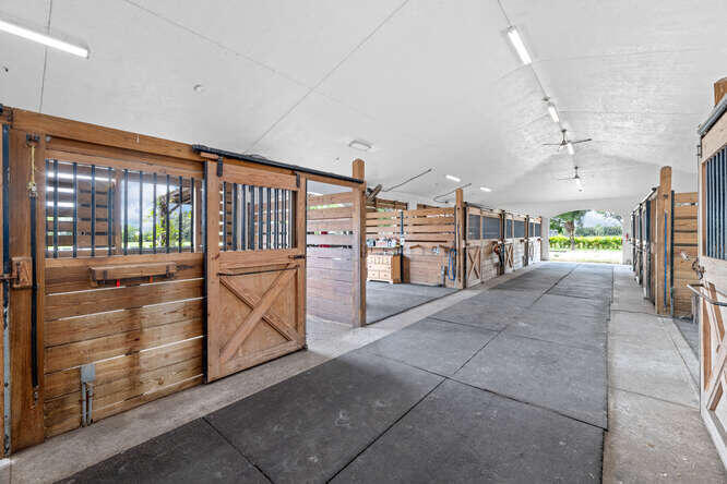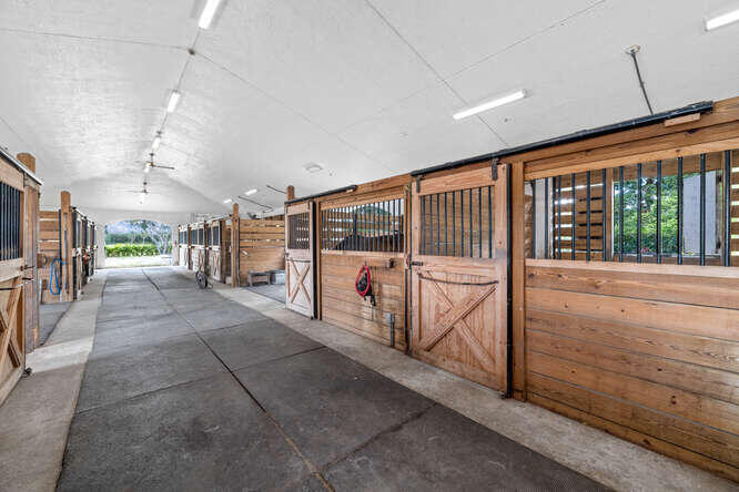 Discover a premier and outstanding equestrian facility, features 17 spacious stalls, (12x12 /3.50 m x 3.50m) a tack room, a full apartment, plus two additional groom's apartments, Washer and dryer, tack room and a beautiful terrace.Train with top-quality facilities, including 35 mts x 70 mts = 114 ft x 230 ft sand arena and a lush grass field, offering everything you need for year-round or Season. Whether for personal use or as a professional equestrian operation, this property provides the perfect combination of luxury, convenience, and prime location near the show ground fields.