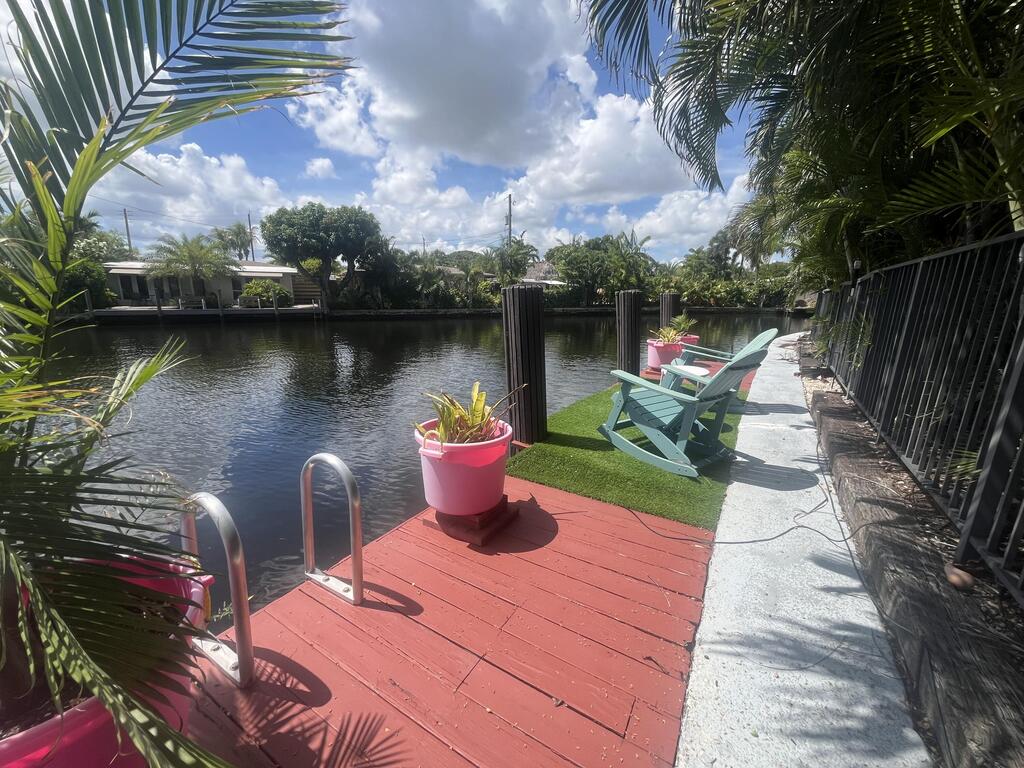 True Rare Florida Charmer with Incredible Waterfront Views and oversized salt water pool. This 3br / 2ba home is on the point lot and located near downtown Wilton Manors. Property has over 130 feet of waterfront with a dock for boaters, kayaks, paddle boarding and much more! Ocean access and near intracoastal. Huge yard with plenty area to entertain. Large 2-car carport with large driveway for additional off street parking on quaint private street. Excellent neighborhood; walk to park; property located at cul-de-sac. New aluminum metal roof installed. Complete hurricane impact windows and doors! One (1) fixed bridge. MUST SEE!!!