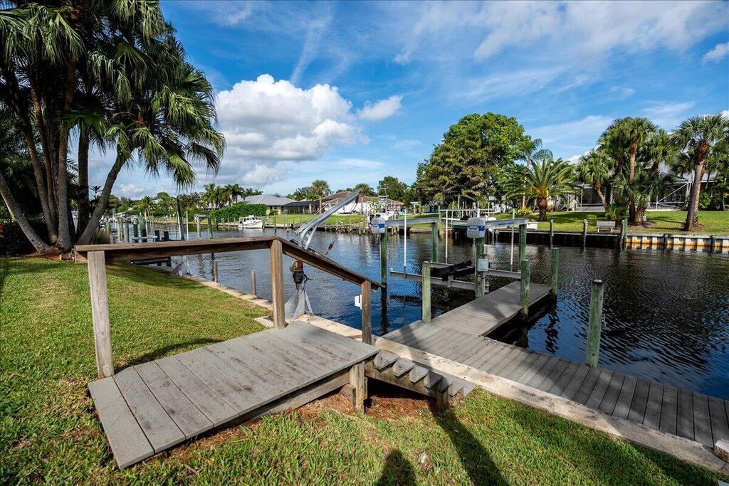WATERFRONT OCEAN ACCESS & POOL W/ PRIVATE DOCK/BOATLIFT. Positioned at the St. Lucie River, this beautifully remodeled home is complemented with a modern coastal decor and is fully equipped and furnished for your stay. Whether you're an avid boater or just looking for a gorgeous spot to relax, you're sure to find yourself sunbathing by the crystal clear pool that overlooks a private dock where you can tie up or fish for a variety of species. Currently accepting for next season offers until ST Rental however Annual is optional (utilities negotiable) The listed rate is Off-Season rate; Mid-Season $8900 ; Season: $12K (taxes & fees apply)