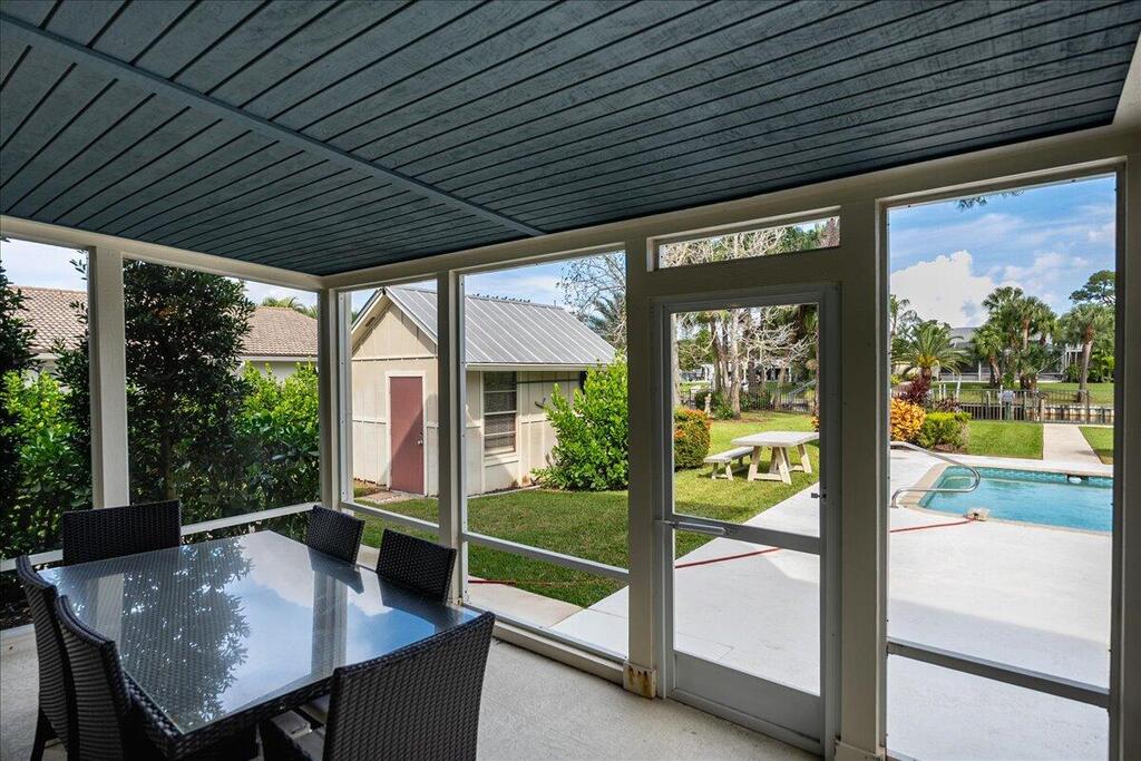 - Exterior FeaturesAuto Sprinkler, Covered Balcony, Covered Patio, Fence, Fenced Yard, Screen Porch, Screened Balcony, Screened Patio and Shed