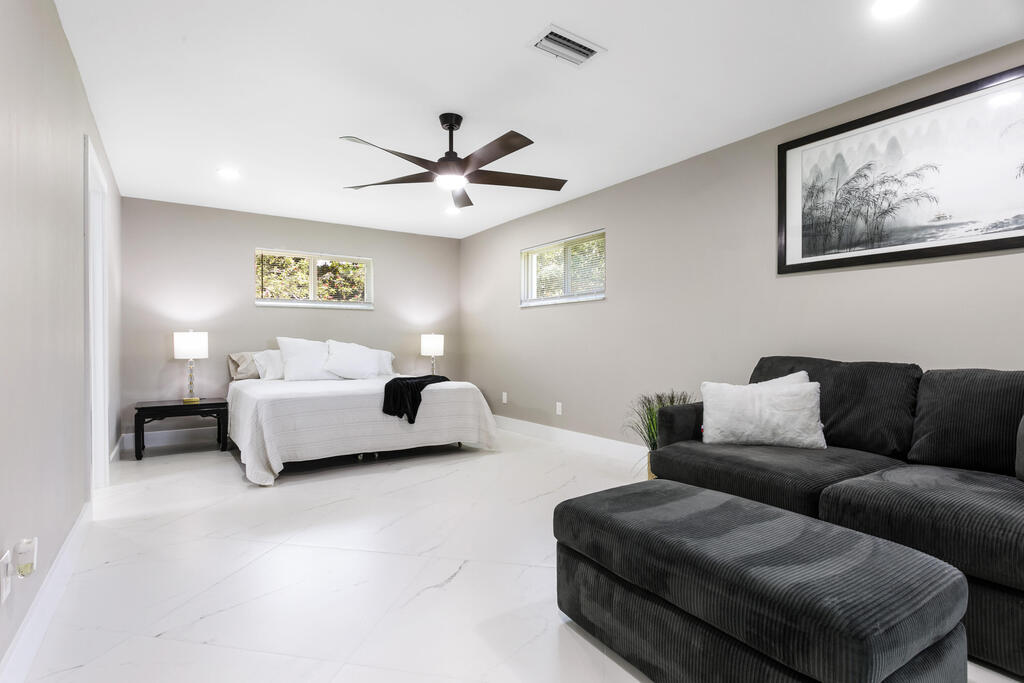 CBS fully renovated 4 BR, 3.5 BA, 2CG residence features open concept living, 8' ceilings with recessed LED lighting and smart home technology. 32x32 Porcelain Tile throughout highlights the spacious Living area with large windows, redesigned kitchen with quartz Island and Countertops, Carrera Marble Backsplash, solid Wood Shaker Cabinets and Samsung SS appliances. Spacious primary suite offers comfortable relaxing area and large closet space. Primary Bath has frameless glass shower and shower/tub combo. Additional Bedrooms share 2nd Bath with Double Vanity and Tub/Shower. A flexible en-suite bedroom/home office/den offers the ideal space for guests or work-from-home needs, plus a powder room.