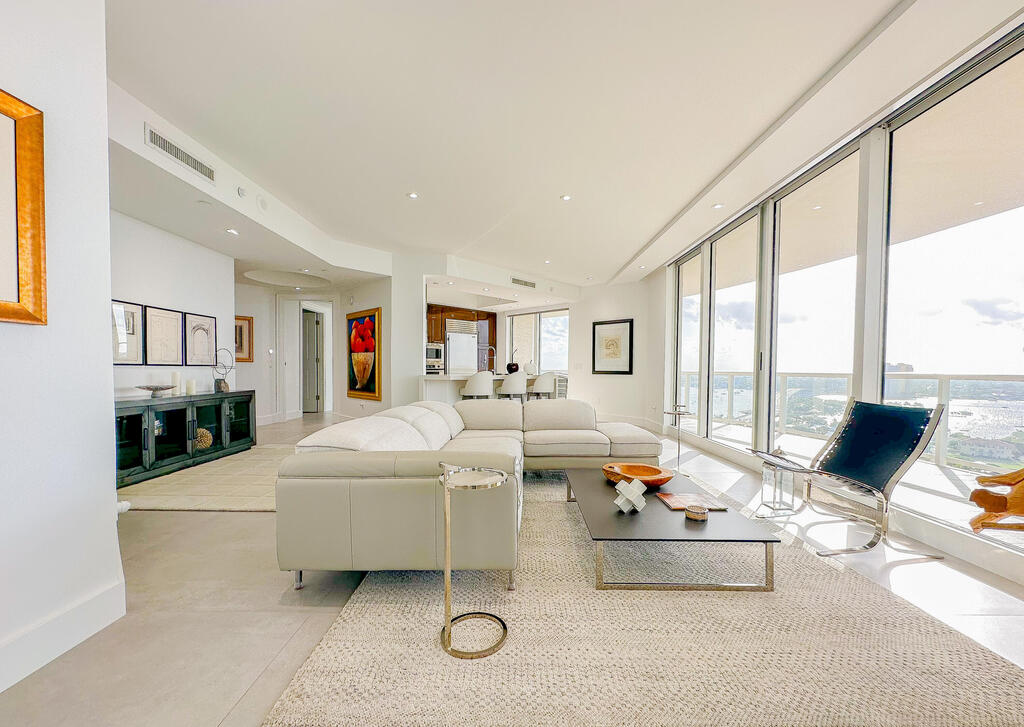 Exceptional seasonal rental opportunity (also available annual, or off-season) in the Ritz Carlton! Updated 2 bedroom + open den, 2.5 bath residence with panoramic waterway and Island views from every room (incl some ocean views). Expansive covered balcony, beautifully furnished. Amazing Ritz Carlton resort lifestyle - 8.8 acres, 375' of deep sandy beach, two pools, private poolside restaurant, fitness center, 24-hr concierge, valet parking and security. Private screening room, social room w/catering kitchen & billiard table, library. business center. 2 garage spaces. Walk to restaurants, marinas & shops. Short drive to Palm Beach. No pets, no smoking. Available for Season starting11/15/25.Oceanfront Lagoon Pool is openResort pool/deck renovation scheduled to be completed Q1 2026