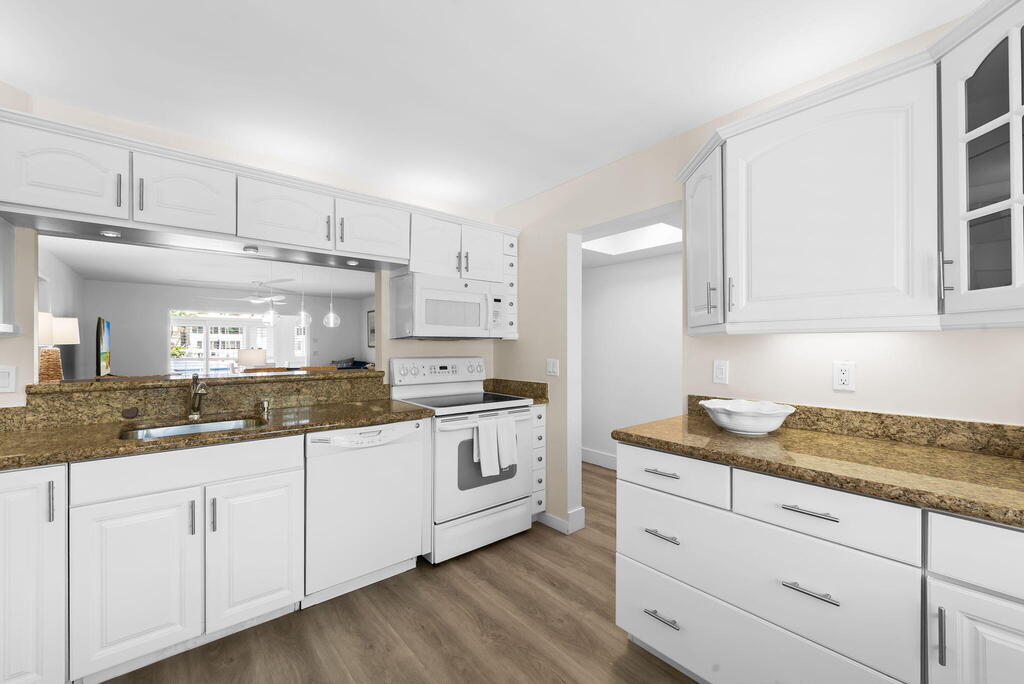 This nicely appointed 2 bedroom 2 full bath first floor condo with water views in highly sought after Highland Beach. Nestled on a quiet cul de sac street this unit offers pool and water views. White cabinetry with granite countertops and pass through bar make a for a wonderful entertaining space. Living area is spacious and comfortable. White plantation shutters, impact doors and windows and a split floor plan for privacy. Unit has a one car garage and open parking in driveway. Washer and dryer are in unit. The pool and sundeck with beautiful outdoor furniture are great for entertaining and enjoying the south Florida lifestyle.