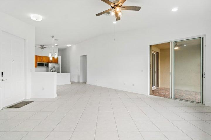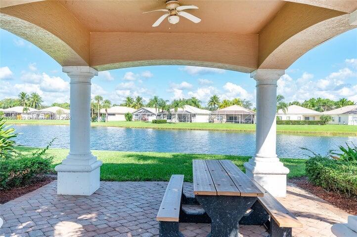 Rent includes HOA fee, gate guard, basic cable TV, internet, and lawn care. Bright, fully remodeled 3BR/2BA lakefront home with upgraded flooring throughout, no carpet. Two laundry areas: one near bedrooms with new cabinetry, another in garage. Spacious primary suite with stunning lake views, patio access, two walk-in closets, dual vanities, and walk-in shower. Kitchen features new stainless steel appliances and two eat-in areas. Open living space with sliding doors to patio and backyard. 2-car garage plus extended driveway. Rent includes landscaping, basic cable, WiFi, 24/7 gated security, heated pool, spa, sauna, fitness center, tennis, billiards & more! Convenient to I-95, Turnpike, PBI Airport, shopping, dining ,more. Yes HOA application and no HOA approval required!