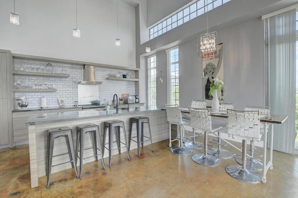- Interior FeaturesCtdrl/Vault Ceilings, Elevator, Kitchen Island, Second/Third Floor Concrete, Upstairs Living Area and Volume Ceiling