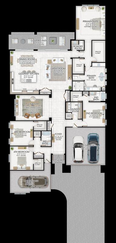 New single-family residence by GL Homes, designed with modern living in mind. It features 4 spacious bedrooms, 3.1 bathrooms, and a versatile flex room. The open-concept layout enhances the home's appeal for entertaining and everyday family life. Located in the upscale Apex community, residents have access to high-end amenities, including a clubhouse, tennis and pickleball courts, a fitness center, and an indoor sports court. The 3-car garage and impact-resistant windows provide both convenience and security, making this home ideal for a vibrant, active lifestyle.