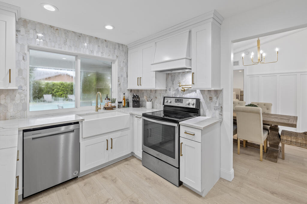 Seasonal Rental: Beautifully updated 4 bedroom home with spacious, fenced yard and heated pool. Tastefully decorated, this split bedroom home is perfect for guests. Kitchen boost all stainless appliances, gorgeous marble countertops, upgraded cabinets and fine fixtures. It has a breakfast counter and is open to the family room. Designer furniture and furnishings at every turn. Cozy fireplace insert in the living room with vaulted ceilings which opens to the formal dining room. Wood look vinyl flooring throughout the home..perfect for pets. Spacious Master bedroom has impact french doors to the pool/patio/backyard, gorgeous remodeled bathroom and large walk in closet with organizer. Great outdoor patio/heated pool/gazebo space.-great for entertaining..