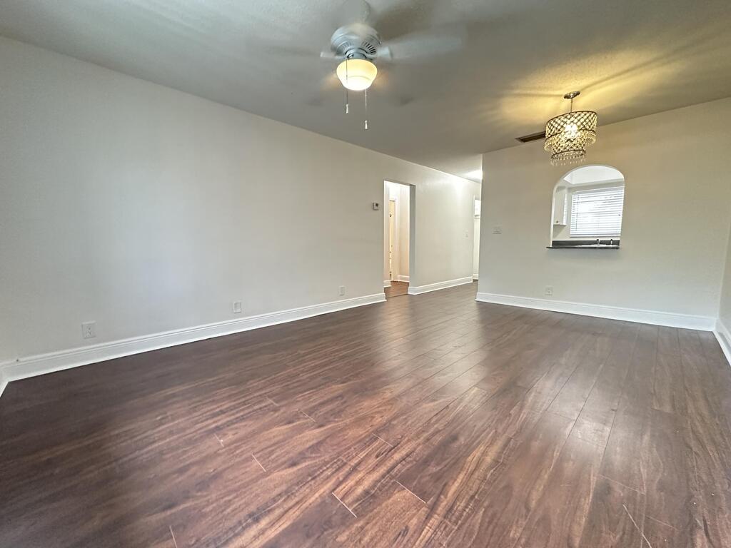 Large 1 bedroom and 1 bath in Coral Ridge Isles. Updated laminated wood flooring throughout. Large kitchen with glass-top stove, dishwasher and refrigerator. Open Dining/Living Room area. Walk-in closet and lots of closet space. Updated bathroom. Freshly painted, cleaned and ready. Very quiet and private street. Beautiful water views of the canal. Central AC. Rent inc. Water/Sewer and Garbage removal. On site Laundry facility. Quick approval.