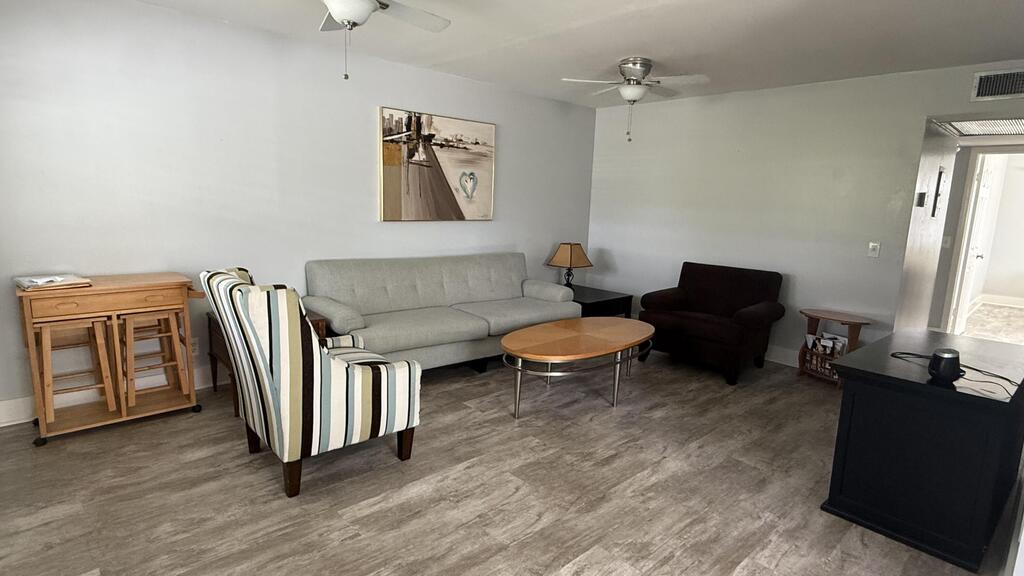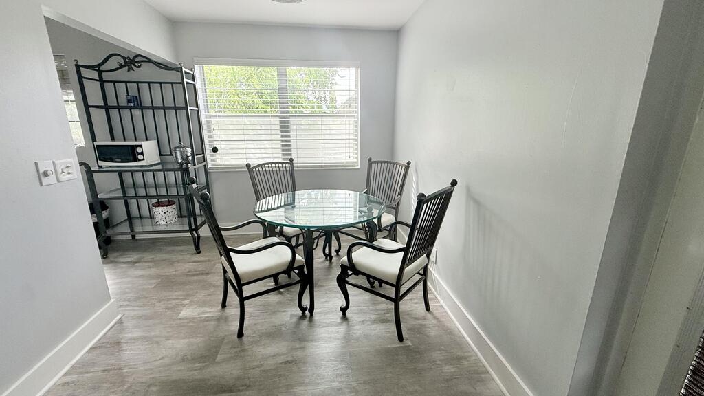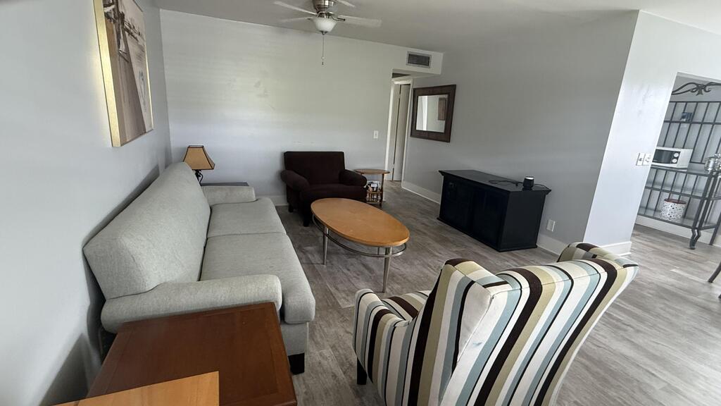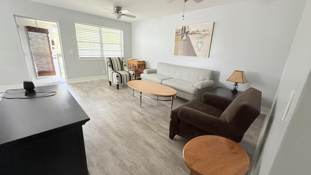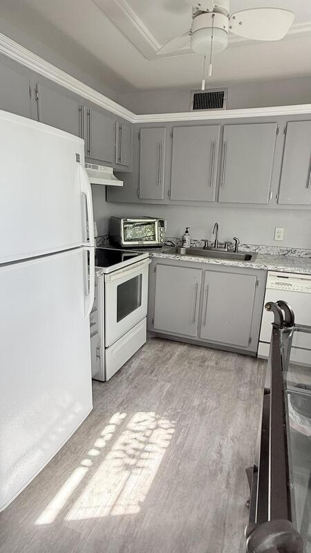How does cocktails on your private screened enclosed balcony overlooking plush gardens, fruit trees, exotic birds wildlife and flowing canal outside your primary bedroom with walk in closet sound? This rare vacancy includes a ''State of the art'' gym membership AND HBO w basic cable.Our Courtyards offer ample stone tables and umbrellas for family BBQ and fresh herbs flowers and a delightful ylang ylang tree make this home magic.Emotional support pets are welcome & the association is non smoking to protect our lungs. Newly remodeled with modern Gray plank tile floors, 6 panel doors, glass shower doors, newer appliances under 1 year, circulating fans, & dimmers throughout for romantic ambiance.Entire condo has FRESH PAINT and NEW floors.