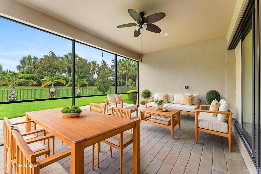 Welcome to Castellina - a luxurious, Italian-inspired gated community in the heart of Wellington. This exquisite home features an open concept layout with 3 bedrooms, 3 full bathrooms, additional office/den or 4th bedroom and spans 2,561 square feet of one level living space. The beautifully updated kitchen is equipped with top-of-the-line appliances, natural gas range, quartz countertops, large kitchen island and a separate ice maker/wine fridge. You'll find plantation shutters and updated laminate flooring throughout the bedrooms. Enjoy the large fenced-in backyard, ideal for outdoor entertaining, and a screened patio. Rest easy with impact glass windows, a full house generator and 2014 construction.Castellina offers an array of amenities, including a clubhouse, swimming pool,