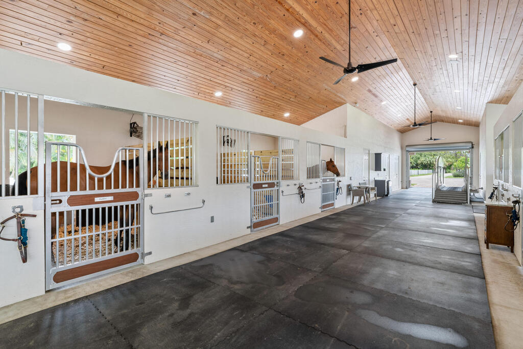 - Equestrian FeaturesBoarding Allowed, Bridle Path/Trails, Center Aisle, Lounge, Paddocks, Stable and Water & Electric