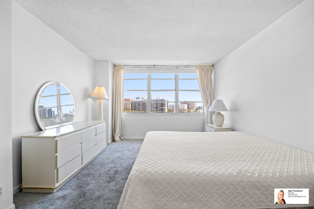2 Bed/2 Bath spacious and bright condo unit with intracoastal & ocean views from every window. Split layout, aminate flooring in the living area and carpets in both bedrooms. Spacious kitchen with newer appliances and a bright, airy living space flooded with natural light. The primary bedroom features two oversized walk-in closets, while the guest bedroom includes its own walk-in closet. Offered partially furnished or unfurnished. Assigned covered parking spot.A SECURE AND WELL-MANAGED COMMUNITY. Amenities include gym, saunas, heated swimming pool overlooking the Intracoastal, dedicated BBQ area.