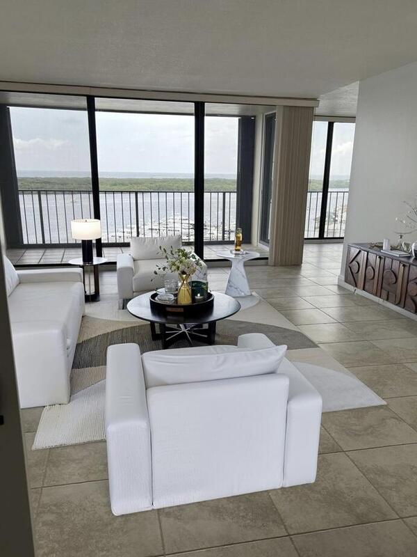 Welcome to paradise! Penthouse condo features breathtaking views of the intracoastal waterway and ocean. Enjoy sunrises and sunsets from your spacious screened balcony. This unit features 2 bedrooms and two baths with tile throughout. The master bedroom has two closets, one walk. Kitchen has all stainless steal appliances and washer/dryer in the unit. Old Port Cove offers a beautiful pool that overlooks the intracoastal, a fitness center, library, community room, boardwalk along the water, and much more! The community is centrally located to all of the finest shopping and dining the area has to offer. Call for your private showing today!