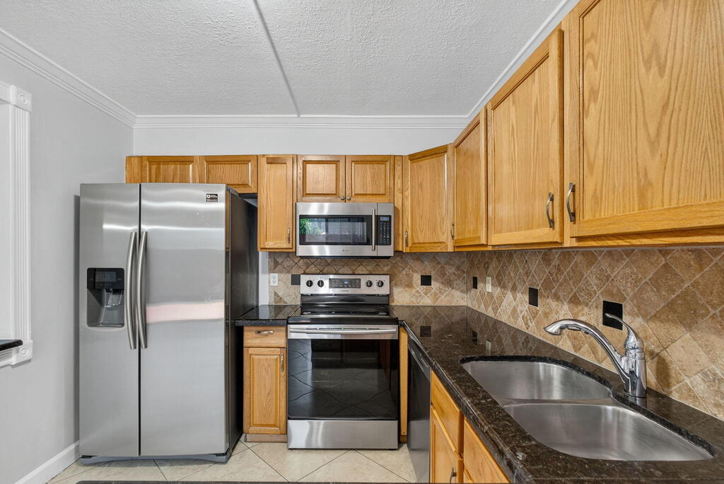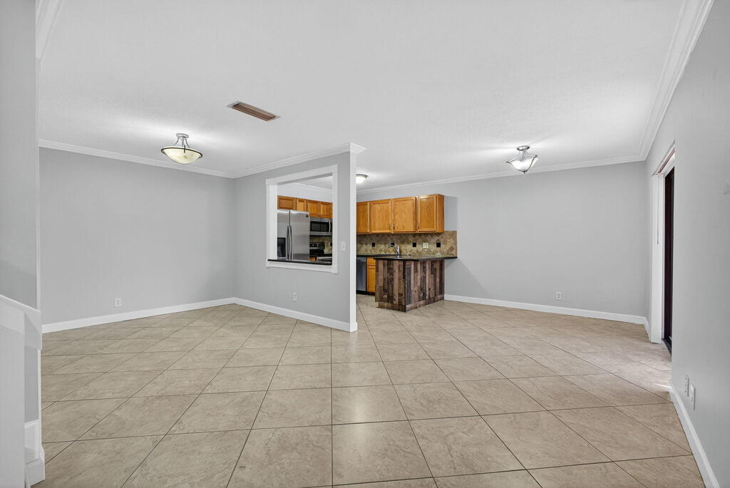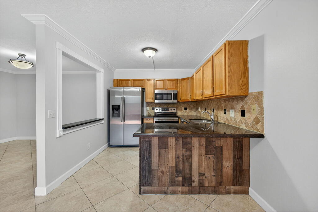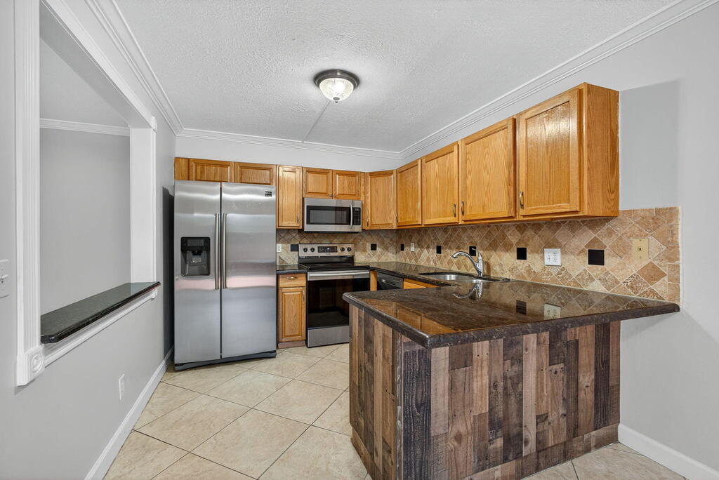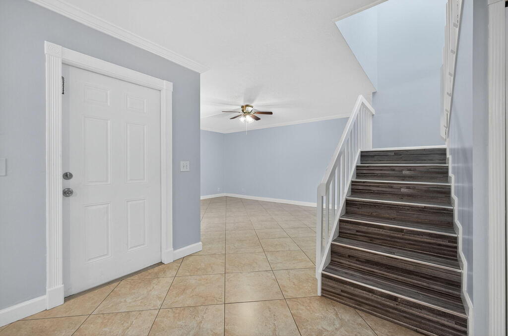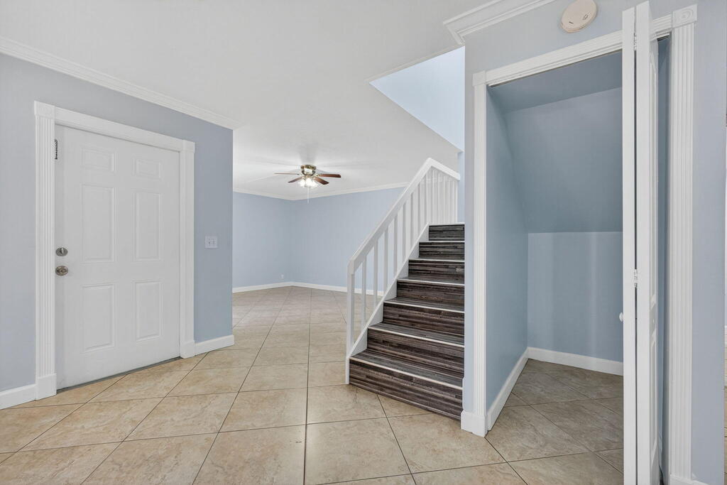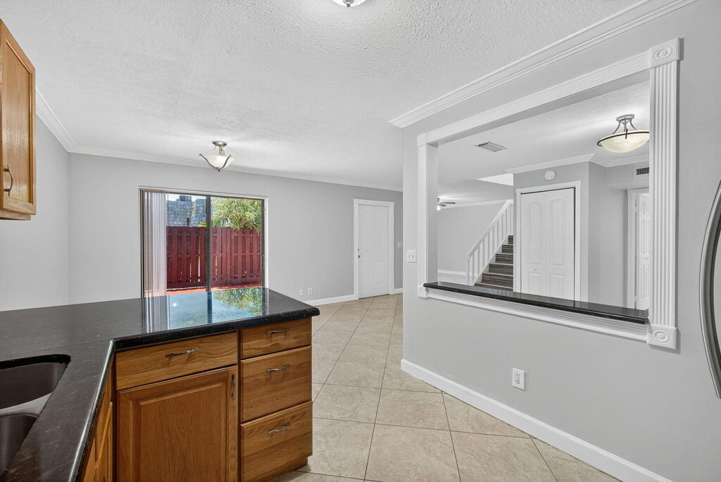 GORGEOUS 3 bedroom, 2.5-bathroom RENOVATED townhome nestled in the vibrant heart of West Palm Beach with a NEW ROOF, New FRONT DOOR and Newer A/C (2023). Meticulously renovated with crown molding throughout the downstairs, captivating farmhouse theme, every corner exudes charm and sophistication. Step inside to discover beauty where every bathroom boasts exquisite tile work and each vanity cabinet has been tastefully replaced. The kitchen is a chef's dream, with nice countertops and equipped with newer stainless-steel appliances.