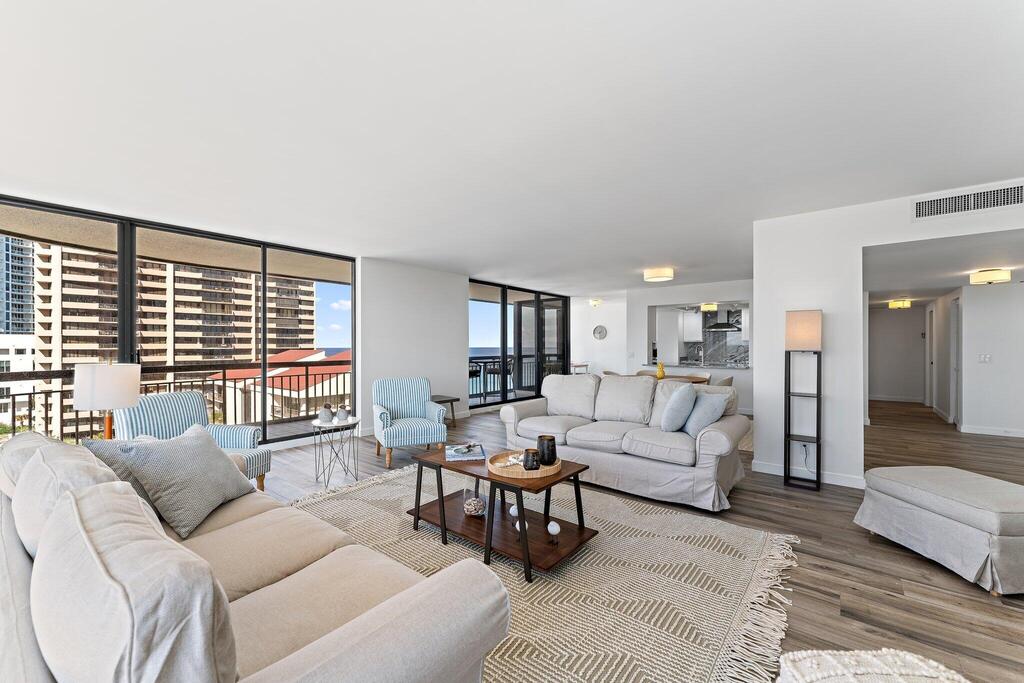 Enjoy the beauty of Singer Island from this completely remodeled 7th floor North West corner residence at the Martinique East tower. This 2 bedroom, 3 1/2 bathroom condo offers a spacious floorplan and privacy with only 4 residences per floor. Three balconies invite you to relax, entertain, and dine outdoors while overlooking the gorgeous Intracoastal and ocean. The Martinique features the finest community amenities including a manned gate, lobby with concierge, parking garage, library, billiard room, fitness facilities, tennis courts and private restaurant open for breakfast, lunch, dinners and parties! The pool deck is under renovation this year.