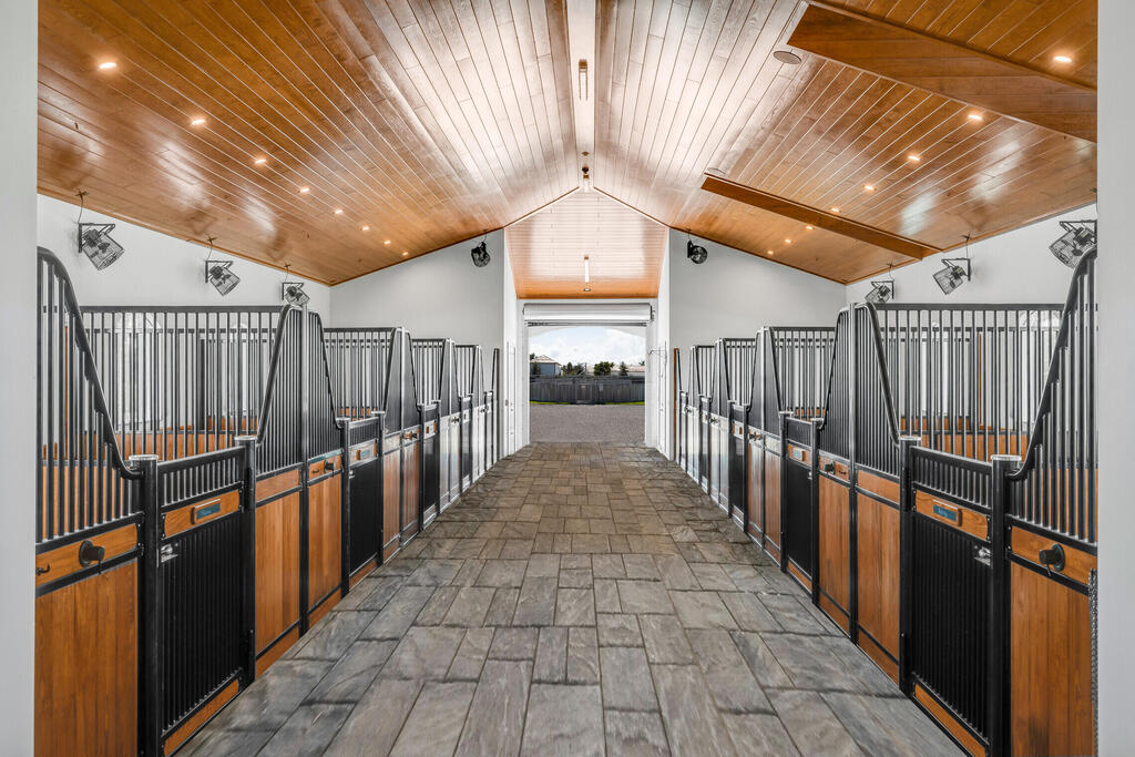 - Equestrian FeaturesBridle Path/Trails, Center Aisle, Grass Field, Lounge, Paddocks and Water & Electric