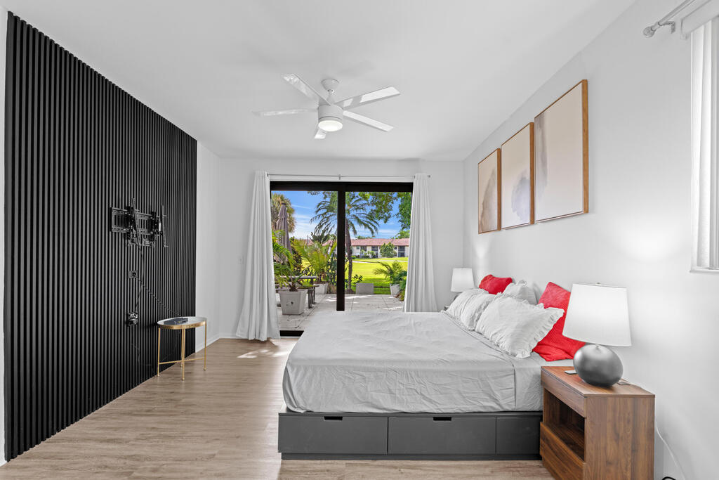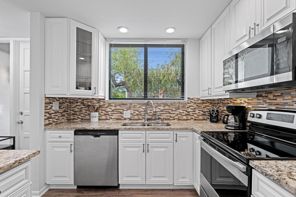 Beautifully updated 3-bedroom, 2.5-bath corner townhome, offered fully turnkey and ready to move in. The open kitchen features stainless steel appliances, an extended granite breakfast bar, and plenty of cabinetry for storage. Sunlight fills the home through sliding glass doors, creating a bright and welcoming atmosphere. For added convenience, one bedroom is located downstairs, while the primary suite upstairs includes a spacious walk-in closet. A full-size washer and dryer are also located within the home. Just steps from your front door, enjoy the community pool surrounded by lush tropical landscaping.