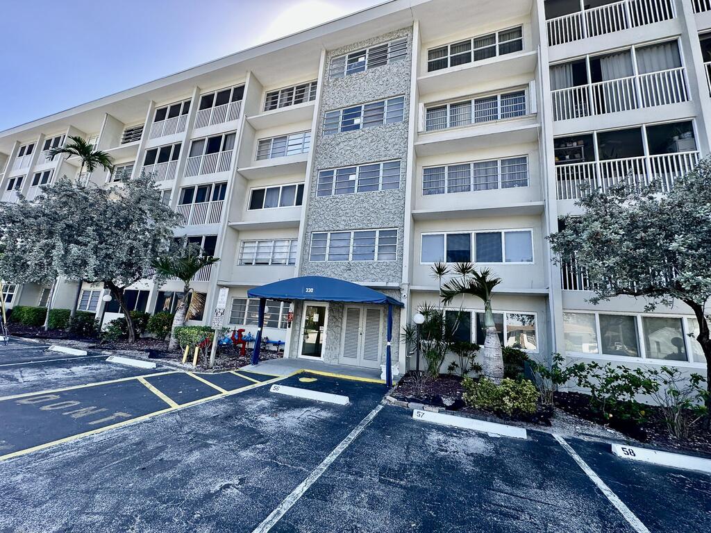 For RENT and for SALE. TOP FLOOR 1/1 lovely condo unit with beautiful natural light. Wood flooring, tile in kitchen. No carpeting. Plenty of closet space and large balcony overlooking city. Active 55+ community with pool, clubhouse, are and shuffleboard. MINUTES to beautiful south florida beaches and walking distance to GULFSTREAM Casino Racetrack, shops and dining.