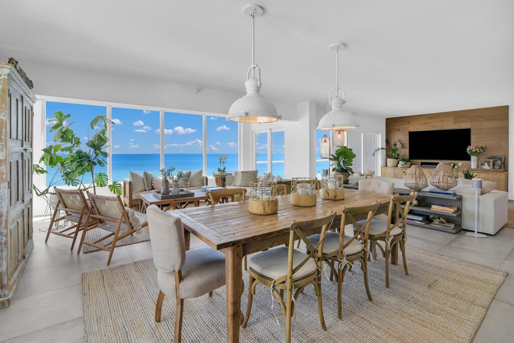 Gorgeous Penthouse apartment with panoramic ocean views. Professionally decorated apartment that has been featured in magazines. Two ensuite principal Suites, one overlooking the ocean, and another one with a balcony overlooking the intracoastal. A third bedroom with ensuite bath. Open kitchen. Recently renovated, the boutique building features a pool, beachside tiki hut, gym, and is just steps from Latitudes Restaurant and a short drive to the vibrant Atlantic Avenue.Washer and dryer in the unit.