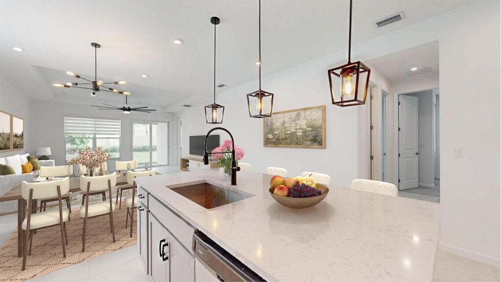 Move-In Ready in Tradition!This 2022-built home offers 4 bedrooms and 3 full bathrooms with a smart split-bedroom floor plan, including a private retreat with a nearby bath--perfect for guests, teens, or a home office.Enjoy modern finishes such as quartz countertops, stainless steel appliances, impact windows, high ceilings, and natural gas for cooking, laundry, and hot water. The home also includes a 2-car garage, welcoming front porch, and a covered lanai for relaxing or entertaining.Your rent includes high-speed internet, cable, lawn care, and pest control--plus full access to the resort-style pool, hot tub, and fitness center.Located in EMERY II at Tradition, just steps from the future Regional Park and minutes from shopping and dining.Schedule your showing today!