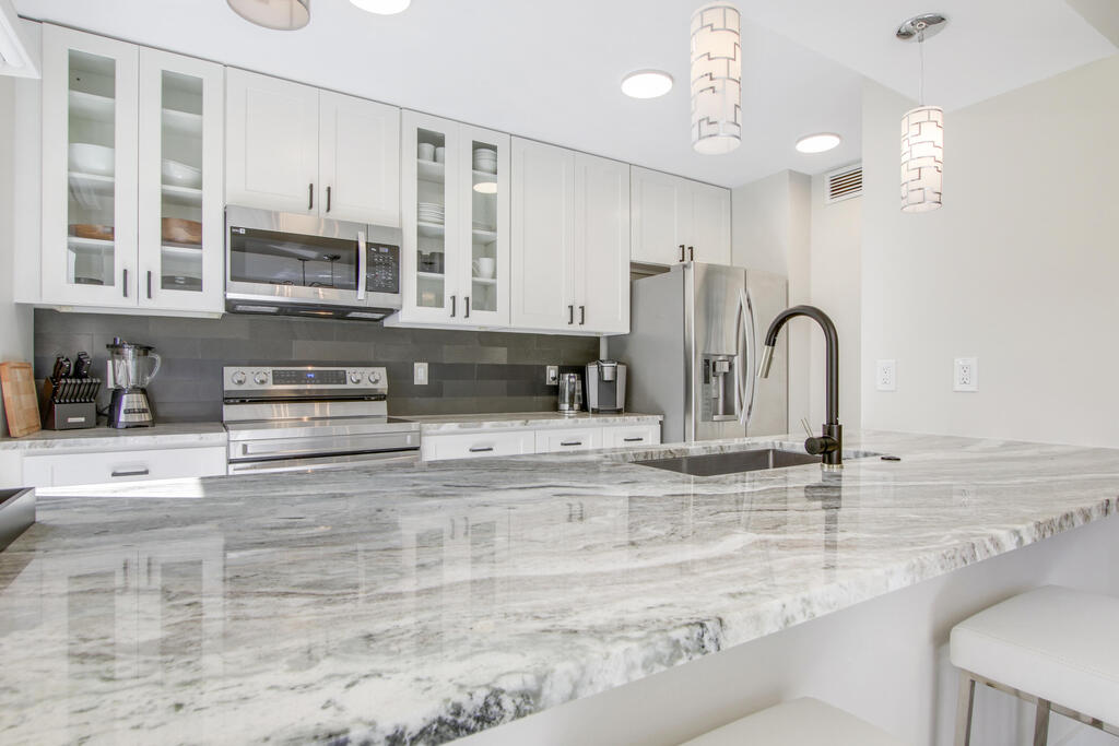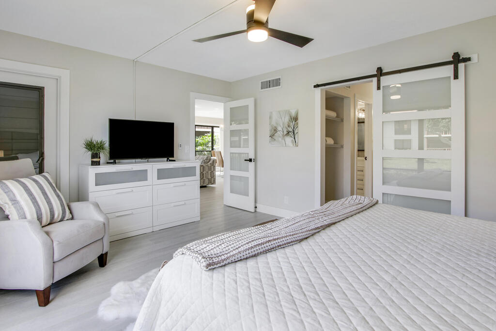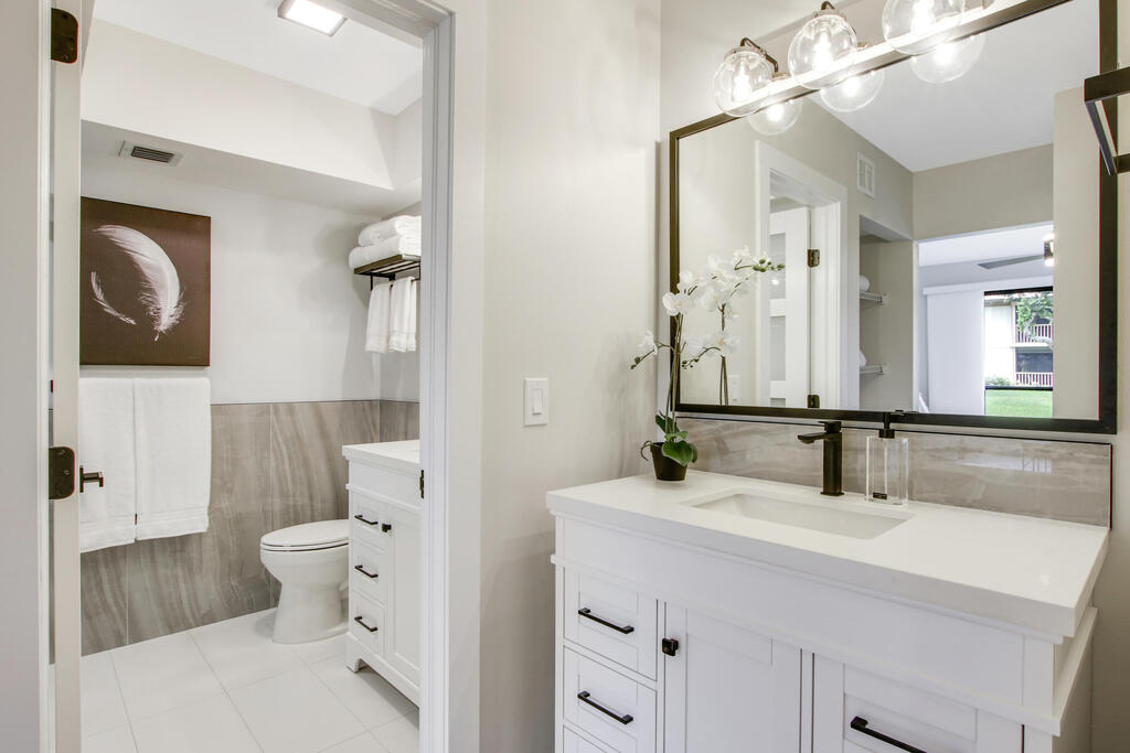Rates: December 2025 $7000, Jan 2026 $12,000, Feb 2026 $14,000, Mar and Apr $12,00. Great care has been taken in ensuring that this beautiful condo is prepared for your ultimate comfort and enjoyment. Step into luxury wood-look flooring throughout. Stunning new quartz kitchen countertops with a stainless steel sink and faucet. The unit is elegantly decorated with a modern relaxing style and furnished to sleep 4 with a guest room that can be arranged with two twin beds or a single king sized bed. Sip your morning coffee from the fully screened lanai which overlooks tranquil water. Not available for subletting.