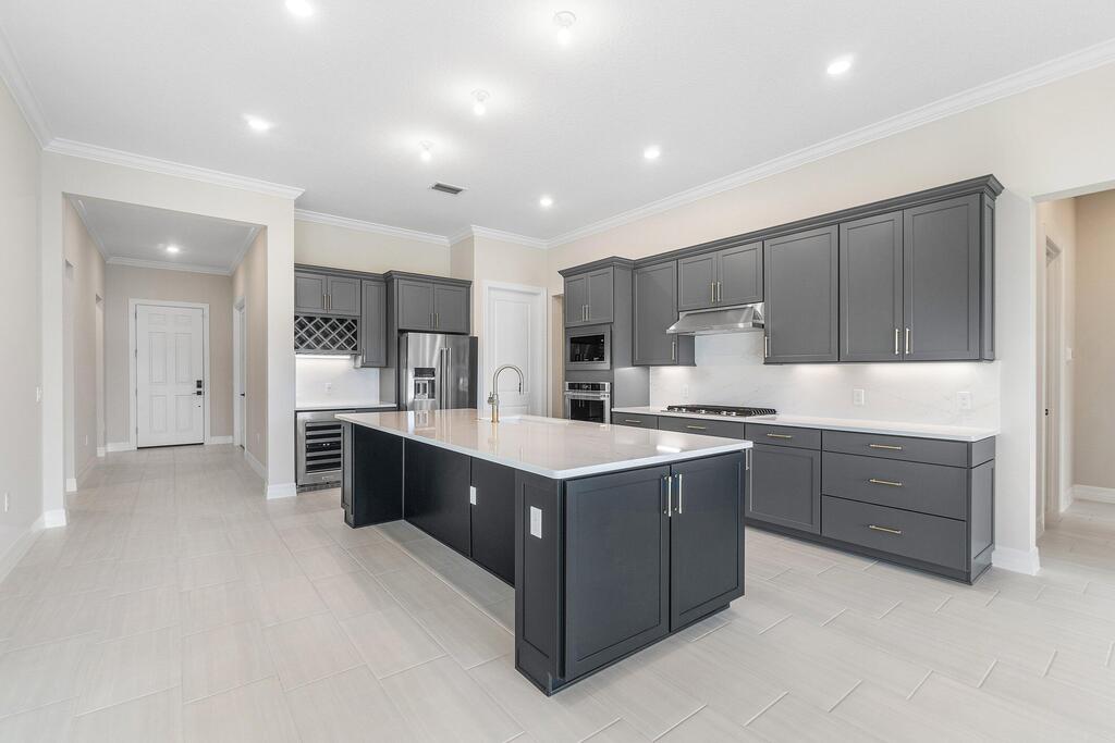 Enjoy easy, upscale living in this lakefront 3-bedroom + flex room, 3-bath home in sought-after Avenir. Light-filled and spacious, it features an open kitchen with quartz countertops, walk-in pantry, and oversized island. The flexible floorplan includes a custom mudroom, upgraded laundry, motorized blinds, and a golf cart garage or extra storage. The serene primary suite offers dual vanities and a walk-in shower. Located in a resort-style, golf cart-friendly community with incredible amenities. Available for immediate occupancy.