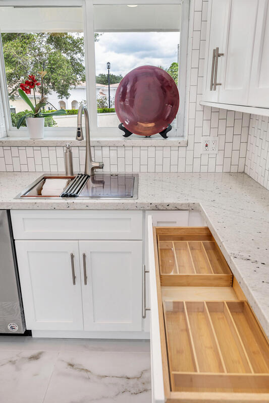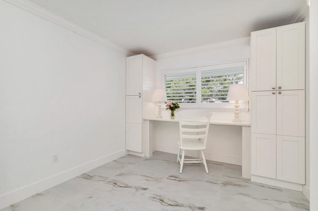 LEASE TO OWN OPTION AVAILABLE! The owner/designer of this iconic Mid Century Modern condo reimagined the space and created a home that is more like a refined hotel suite -- than a typical cramped 2 bedroom two bath apartment. There is nothing like it on the market! Wide open concept living! Stunning oversized elegant kitchen. Work from your private office space or retreat to your living/ bedroom suite. The layout is Ideal for a single individual who works from home OR for a couple who visits Jupiter and enjoys hotel living without the cramped confines of a hotel room! Enjoy worry free living for years to come.....Freshly painted and everything is New!Every surface, cabinet, fixture, appliance. EVERY detail is gorgeously styled, sophisticated, and lovely to the touch.
