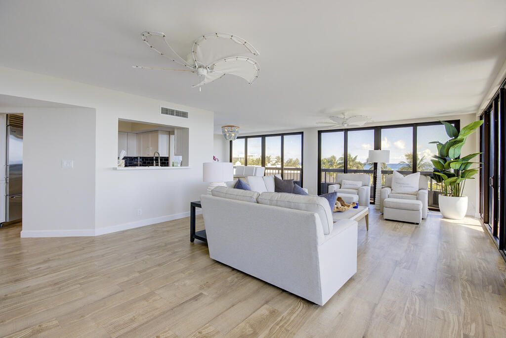Experience the ambiance and quality of a 5-star hotel in this fully furnished, turnkey paradise. This luxurious 2-bed, 2-bath residence features stunning, completely unobstructed ocean views from every room--a priceless amenity you can enjoy without stepping onto the sand. The interior is a showcase of coastal elegance, featuring sophisticated tile floors and classic plantation shutters. Private patios offer the perfect vantage point to take in the breathtaking panorama. Best of all, you are just a short, direct stroll across to the beach and only moments away from the vibrant dining and chic shopping of Atlantic Avenue. This is prime coastal living with unbeatable views and unmatched convenience.
