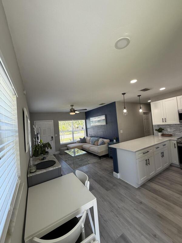 Step into a stylishly renovated home just minutes from vibrant downtown Delray and Atlantic Avenue. The open-concept kitchen features shaker cabinetry, quartz countertops, and a striking stone backsplash. Wood-look tile flooring runs throughout, leading to a remodeled bathroom with elegant porcelain tile. Updates include newer appliances, AC, hot water heater, attic insulation and upgraded plumbing and electric. Out back, enjoy a fully fenced yard with a hardscaped patio, fire pit and mango tree --ideal for relaxing or entertaining.Live like every day is a getaway--sunshine, ocean breezes, and the ease of Florida living at its finest. Indulge in the ultimate Florida retreat with a renovated home that blends comfort, convenience, and coastal living.