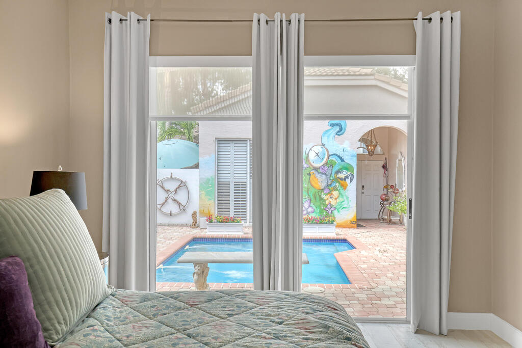 COTTAGE IS TENANT OCCUPIED. RENTAL AVAILABLE FOR 6 MONTHS JAN-JUNE. Step into style, comfort, privacy with this beautifully designed 2- bedroom / 2 bathroom residence plus 1/bathroom 1/ bedroom guest cottage. The home embraces a sun-drenched courtyard pool, bringing the outdoors in-so every day feels like a resort getaway.The primary suite is a true retreat, with pool views, a generous walk-in closet, and a spa inspired bath, complete with roman tub, dual vanities and a separate shower. Entertain with ease in the formal dining room just off the updated kitchen, gather in the spacious living room over looking a tranquil zen garden.