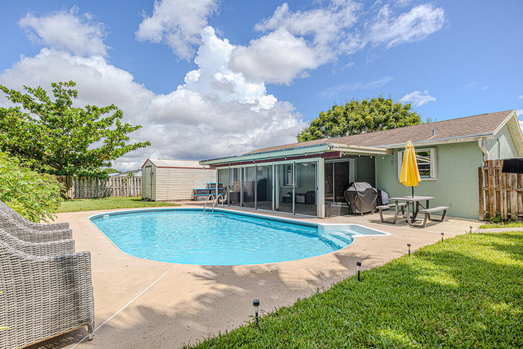 Step into serenity with this beautifully maintained 3-bedroom, 2-bathroom home, offering 1,264 sq ft of comfortable living space. Nestled on a generous lot in a welcoming family-friendly neighborhood, this charming property combines indoor comfort with outdoor allure. Enjoy relaxing or entertaining on the spacious patio, which leads to a manicured backyard featuring a sparkling pool-your own private oasis. The oversized driveway, 1-car garage, and additional storage shed provide ample room for vehicles, tools, and more. This home is also available as a seasonal rental at $3,900/month, offering flexibility for those seeking a short-term retreat in a prime location. With unmatched access to recreation, dining, and parks, this home truly offers the best of convenience and comfort.A MUST SEE!