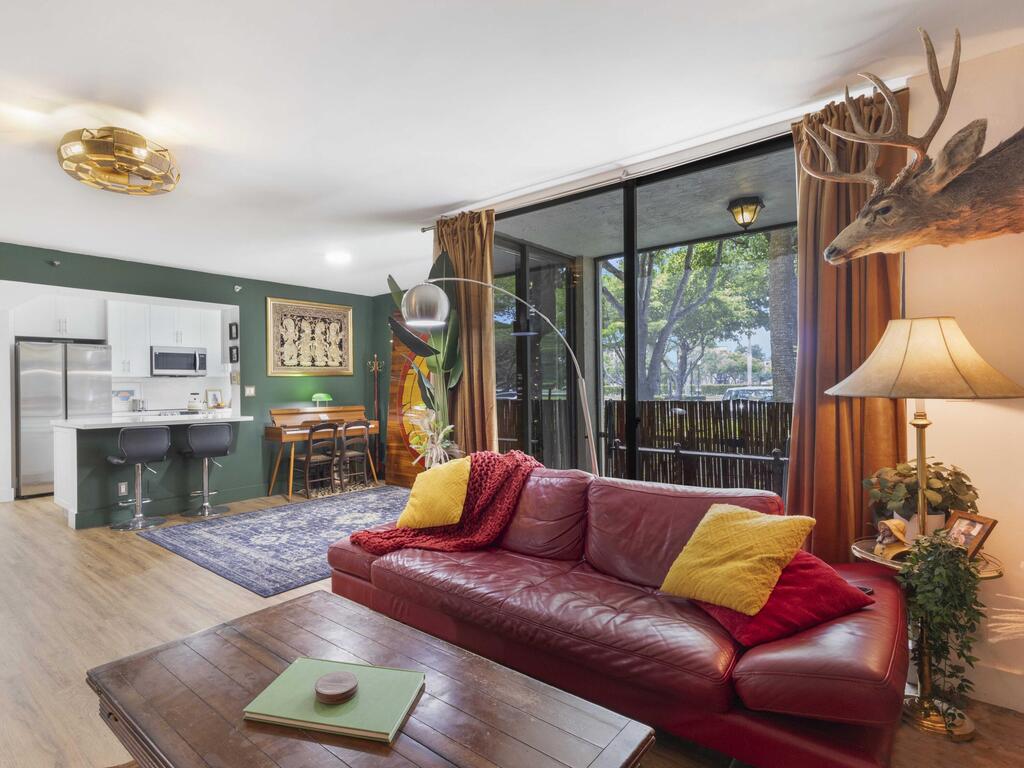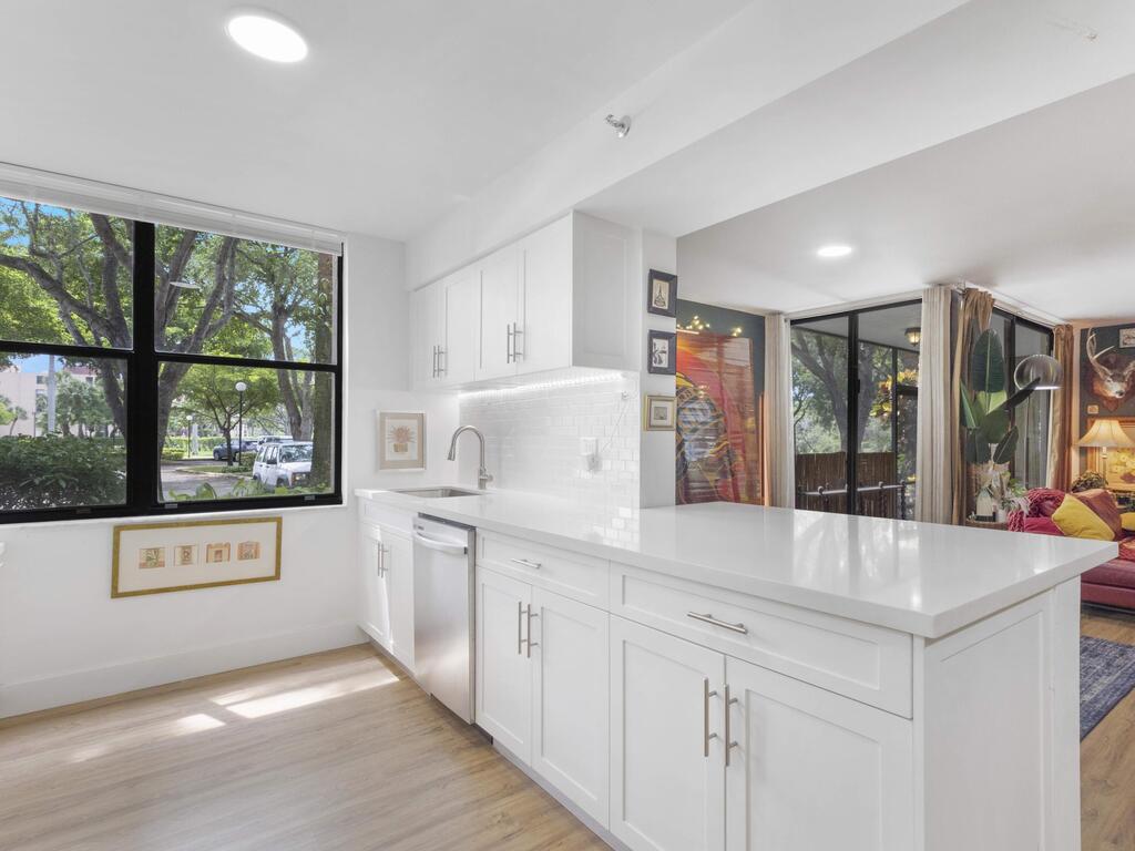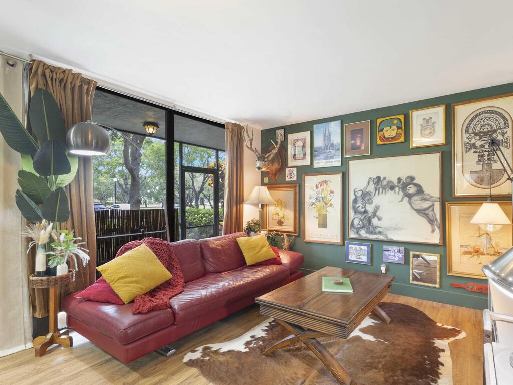 Live Inspired Year-Round! Welcome to this art-inspired retreat at Delray Racquet Club. A beautifully remodeled ground-floor 1-bedroom, 1-bath condo at Delray Racquet Club. Filled with character, unique artwork, and stylish design touches, this home offers a vibrant yet comfortable atmosphere unlike any other. Enjoy serene lake views from your private screened patio, a sleek kitchen with stainless steel appliances, and an in-unit washer and dryer with a spacious laundry room for extra storage. Bright and inviting, the residence features automatic lighting, a modern ceiling fan, and no carpet throughout. Amenities: Residents have access to a heated pool, tennis and racquetball courts, and jogging trails, everything you need for an active, sun-filled lifestyle.