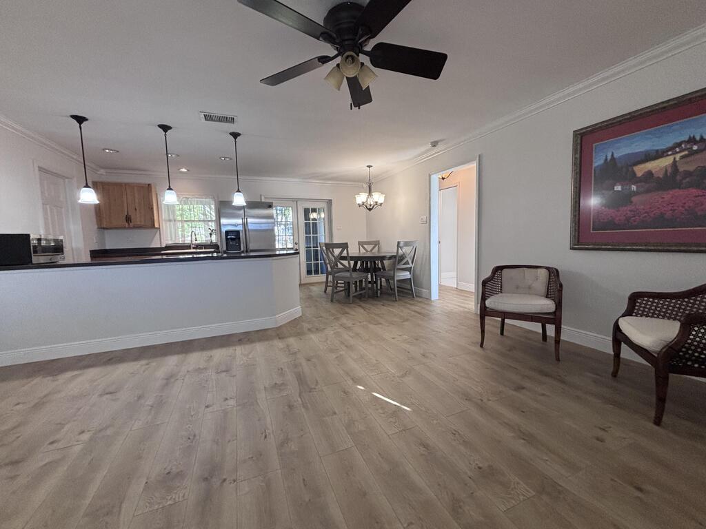 ANNUAL UNFURNISHED RENTAL - LEISUREVILLE 55+ COMMUNITYBeautifully updated 2-bedroom, 1-bath single-family home offering comfort and convenience in the highly desirable Leisureville community. This home features brand new hybrid wood-look flooring, new porcelain tile, impact windows and doors, fresh paint, and crown molding throughout the living, dining, and kitchen areas. The open-concept kitchen boasts wood cabinetry, and the home includes a washer & dryer, garage, and double-wide driveway. Relax on the covered, screened patio overlooking the peaceful garden setting.Leisureville residents enjoy outstanding amenities including 2 clubhouses, 2 heated pools, a free 9-hole executive golf course, billiards, shuffleboard, a community shuttle, and more. HOA covers water, lawn care,