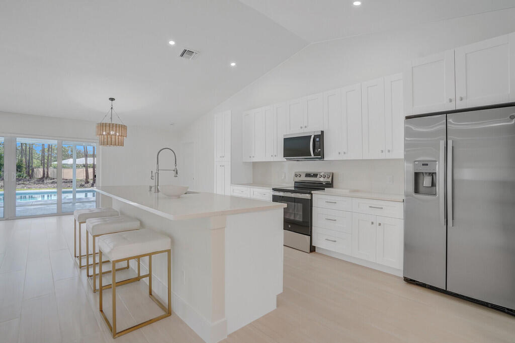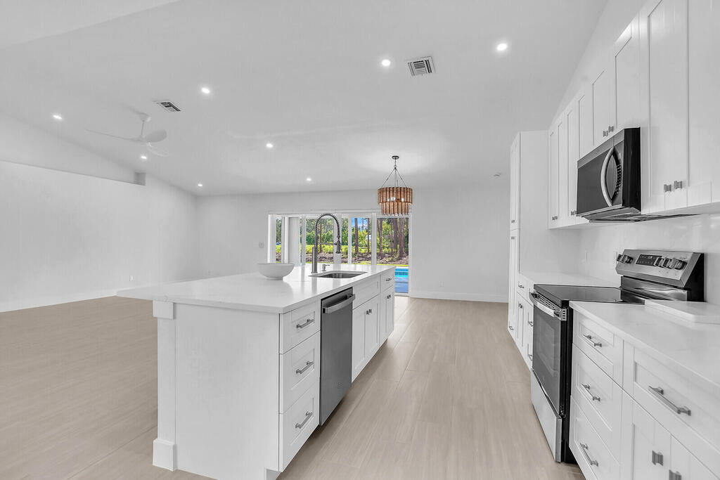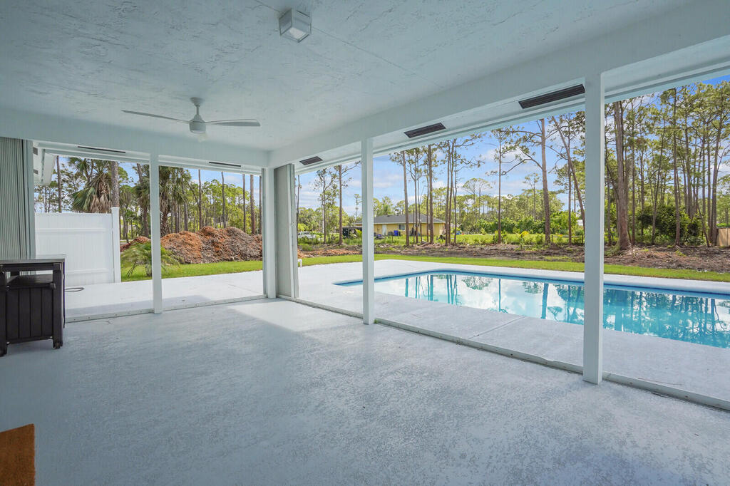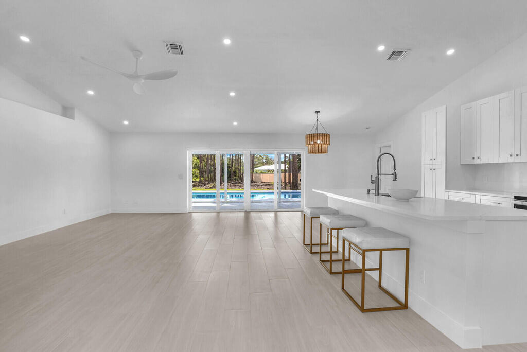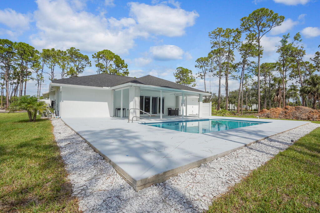 Beautifully remodeled pool home with 3 bedrooms 3 bathrooms and den. Garage is a two car with parking for one car. Garage has a new air conditioner with an 8X7 office. This gorgeous home is situated on 2.96 acres and has a new roof, new air conditioning, new hot water heater, new kitchen cabinets, appliances, tile plank flooring, all new bathrooms and a new asphalt driveway. Coming soon a new pool screen enclosure and new fence bordering the entire perimeter. Complete hurricane accordion shutters with new impact glass doors.