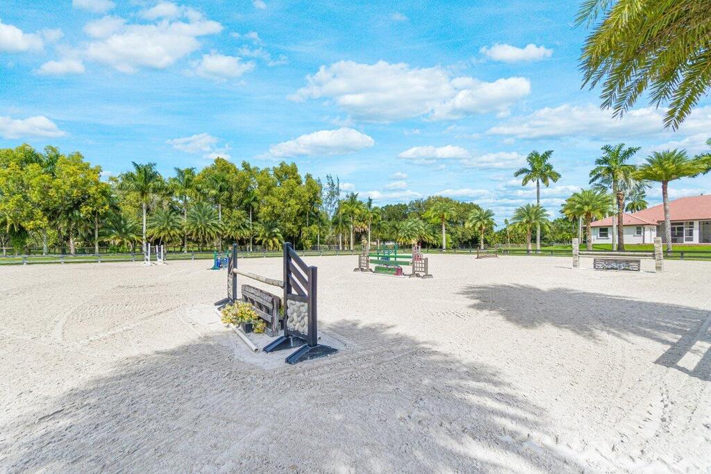 Barn with studio lounge, tack room, feed room, 4 covered wash stalls w/fans, RV hookups. Ring is 175 x 110 w/large irrigation jets, 6 irrigated paddocks. Hacking distance to 365 acre preserve at the end of the road as well as all Wellington bridle paths and WEF.