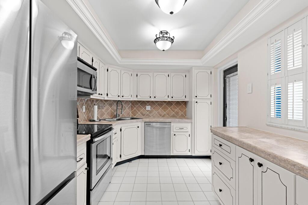This 2/2 condo on the first floor of a six unit two story building at Lands of the President. The unit features two entrance doors and one directly in the kitchen for easy access. The washer and dryer are directly outside the front door and paid by the association. Cable and wifi are included through Comcast. This community is gates and secure and patrolled with entrances from both north and south. The heated pool is located across the street. It is within walking distance to the Tanger Palm Beach Outlet Mall which features Whole Foods, restaurants, shops and a medical building in the process of being built. It is also close to the airport, Target, Kravis, The Square, Palm Beach, beaches.