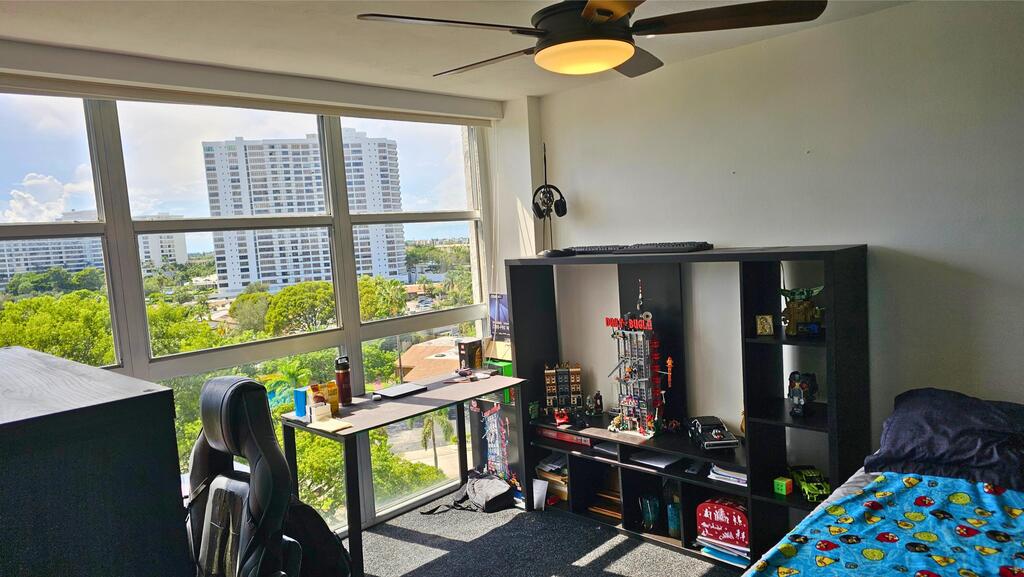 Stunning, spacious, and sunlit 1BD with generous walk-in closet & furnished bedroom den. Open-concept living/dining area seamlessly connects to sleek kitchen featuring SS appliances. In-unit washer and dryer add to the convenience. Step out onto the balcony to relish captivating sunset vistas. This impeccably maintained building boasts 24/7 security, 2 recently renovated fitness centers, private storage, laundry facilities, secure bike room, game/billiard room, private entertainment space, and a library. The complex offers a clubhouse, heated pool with updated BBQ & picnic area, 2 upgraded tennis courts, sauna, & assigned parking with ample guest spaces. Conveniently close to beaches, dining options, casinos, shopping, FLL, etc.