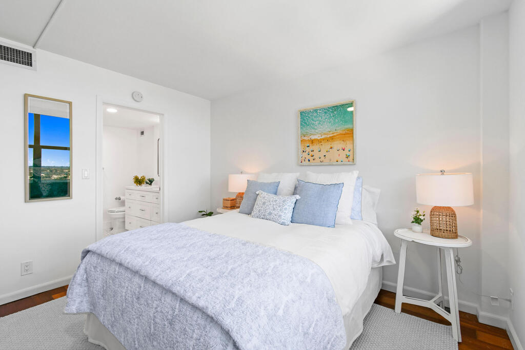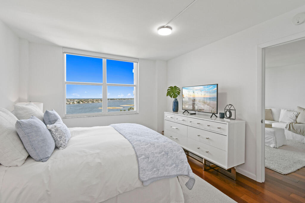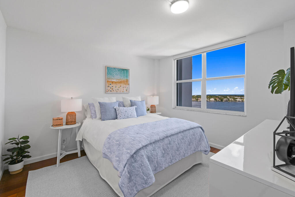 Rent this stunning, fully renovated, fully furnished, split two bedroom, open floor plan, with views of the intercostal, Palm Beach Island and the majestic Atlantic Ocean.Not pictured, more pictures soon, newly installed wood floors, wood doors and trim work. This is being installed now., ready for your first time use.Other new elements include a new kitchen, new bathrooms and closets. The unit as a large storage locker located on the same floor. Rapallo North is an upscale building, with 24-hour doorman, on-site management, a resort-style pool, fitness center, bike storage, deeded parking, and ample guest parking. Located on West Palm Beach's ''Gold Coast'', Rapallo is minutes to The Royal Park Bridge to Palm Beach restaurants, shopping, beaches and much more.