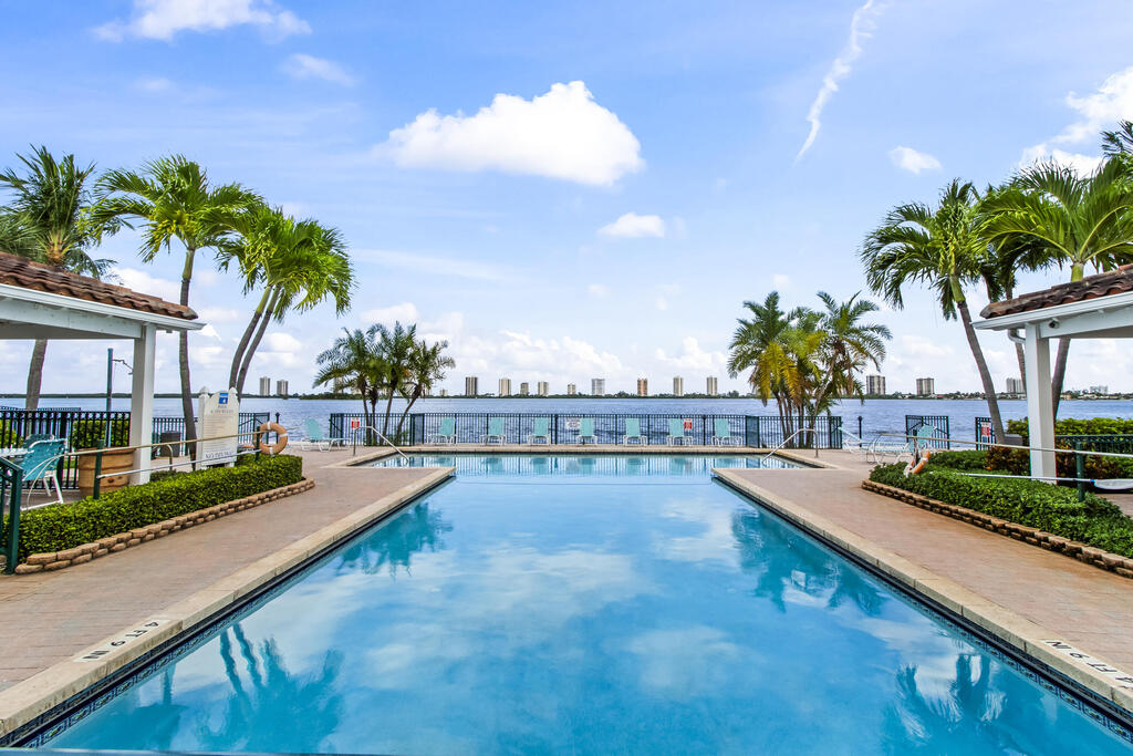 Welcome to Bay Reach, a gated Mediterranean-style community on the Intracoastal offering resort-style living with a heated pool, spa, fitness center, clubhouse on the water, and a private beach for sunrise walks. This fully furnished 2-story condo is available October 15, 2025, pets allowed and one assigned parking space plus guest parking. The first floor features a private bedroom and full bath, ideal for guests, while the second floor offers the master suite, open living and dining, and a sleek European-style kitchen. Enjoy stylish modern furnishings, beautiful water views, and a quiet, well-maintained neighborhood just minutes from The Gardens Mall, Downtown West Palm Beach, City Place, shops, restaurants, and beaches.