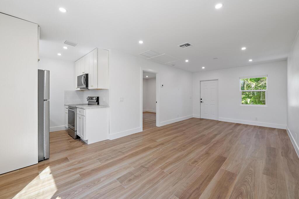 Bright and cheerful 1 bedroom / 1 bathroom conveniently located close to everything in West Palm Beach. This ''just renovated'' garden apartment features central a/c, washer/dryer in unit, new porcelain ''wood like'' flooring, private and fenced backyard, impact windows, new kitchen cabinets & appliances, new bathroom and dedicated parking space. Within minutes of shopping & dining, City Place, beaches, PBIA, The Park Golf and so much more!