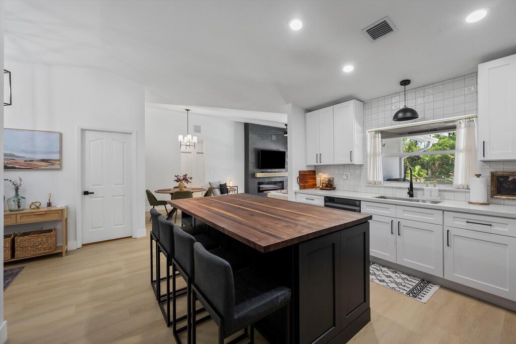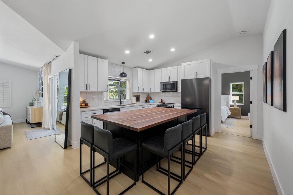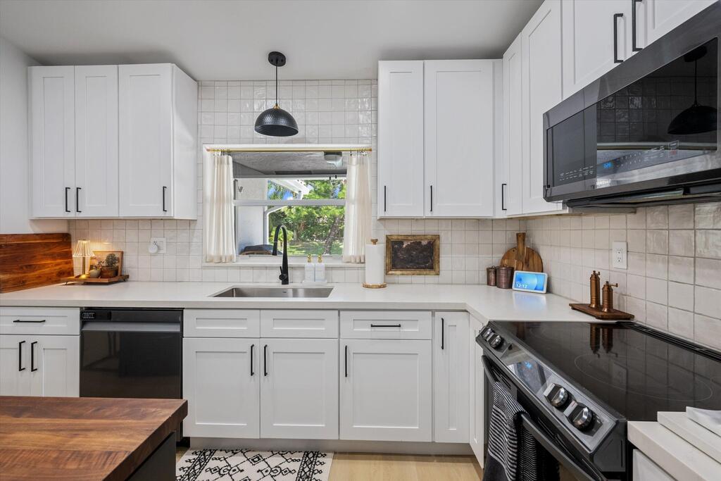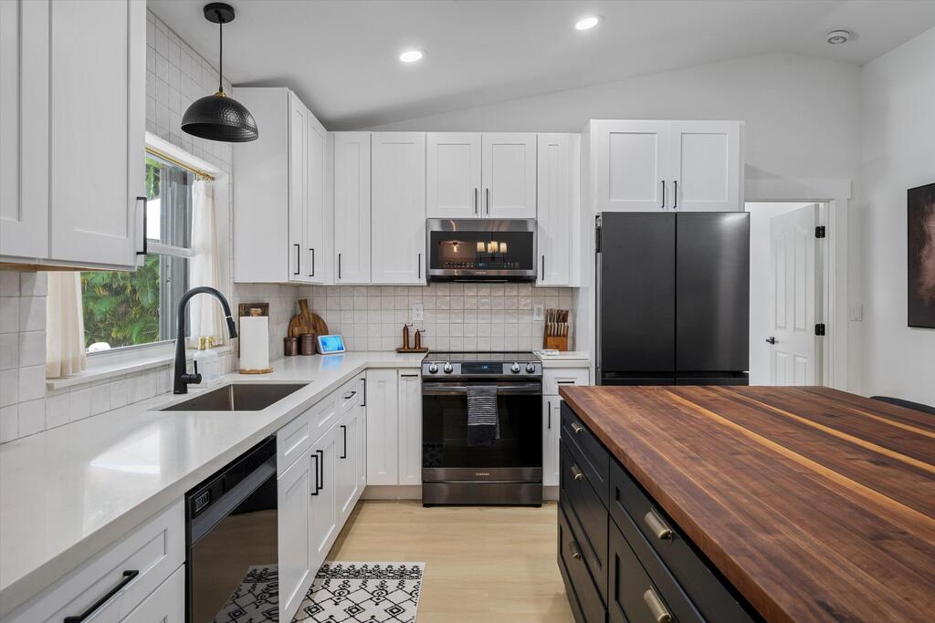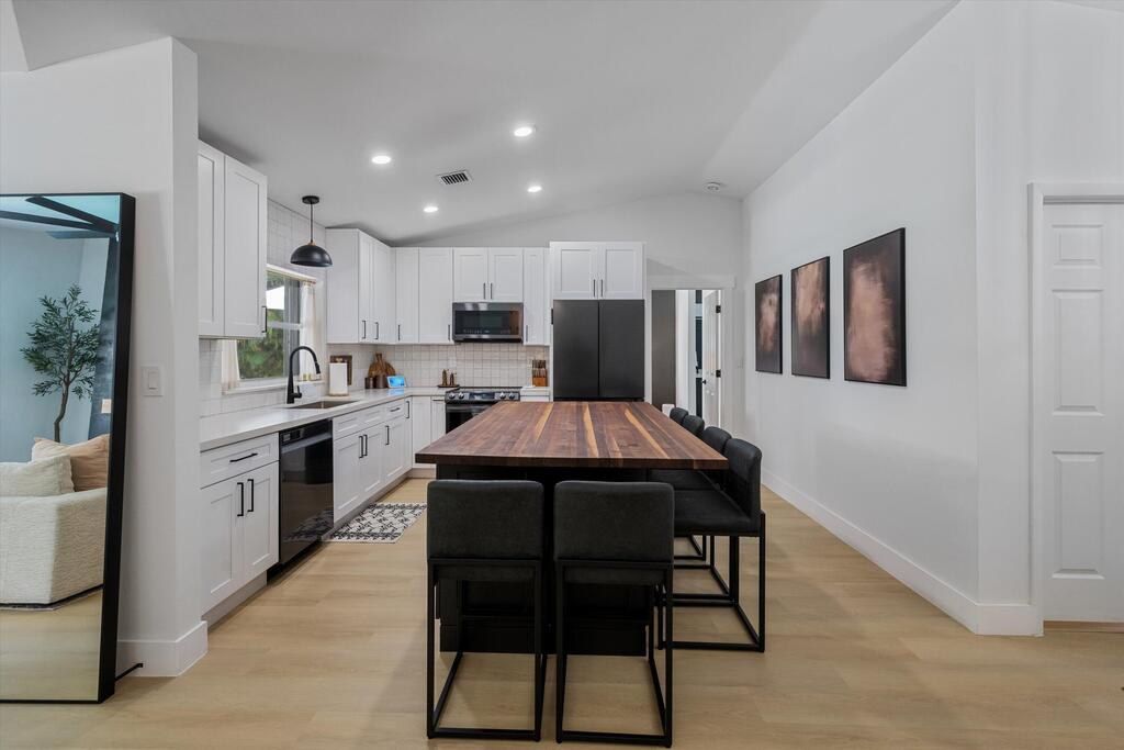 Step into your cozy, modern oasis! This lovingly renovated 4-bedroom, 2-bathroom home is filled with thoughtful details and a warm, organic vibe. Sunlight bounces off the sleek LVP flooring (2024) in the living areas, while soft rugs add a cozy touch. The primary bathroom, remodeled in 2025, feels like stepping into a spa with its stunning concrete-style tile and serene atmosphere. The secondary bathroom features a relaxing tub perfect for unwinding after a long day.The kitchen, remodeled in 2024, is a chef's dream with gleaming quartz countertops, a huge custom butcher block island, and all new Samsung appliances. Just down the hall, the recently renovated laundry/mudroom features handmade cabinets, a peaceful atmosphere, and a full-size washer and dryer, making chores a pleasure