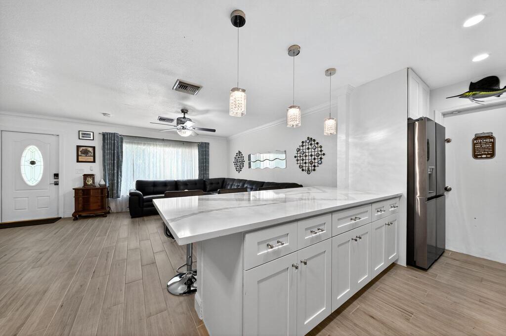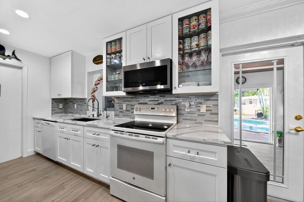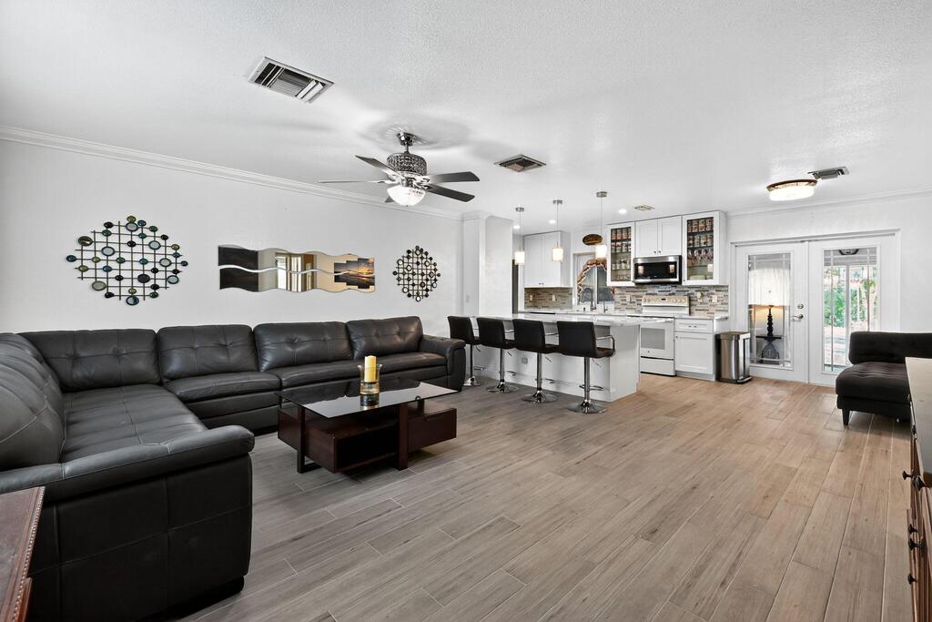 Welcome to this beautifully renovated and fully furnished 3-bedroom, 2-bathroom home for lease, nestled on a quiet cul-de-sac in Jupiter. Recently updated with a brand-new roof and fresh exterior paint (2024), this residence is move-in ready and designed for comfort and style. Inside, you'll find a bright and welcoming layout with hurricane-impact windows, elegant finishes, and thoughtful upgrades. The master bathroom features a travertine shower, while the second bathroom is accented with slate tile. A lovely Florida room provides the perfect spot to relax or entertain year-round. Outdoors, the lush backyard is a private retreat with a sparkling pool and ample space for entertaining under the Florida sun. The extended driveway offers plenty of parking, and