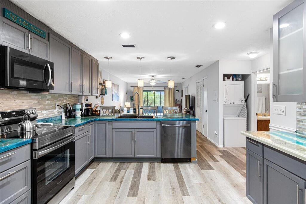 Looking for the perfect 2 bed / 2 bath condo in a gated community with a heated POOL?! This is it! This adorable condo/villa features a spacious living room with a bar counter, new kitchen appliances, 2024 AC, 2024 in-unit washer and dryer, AND a screened patio! Vinyl flooring throughout and fresh paint! This unit comes with 1 assigned covered parking spot which is located DIRECTLY in front of the unit, very convenient when it's raining! There is a private gated and locked storage lot in the community for boat and/or RV storage if needed.