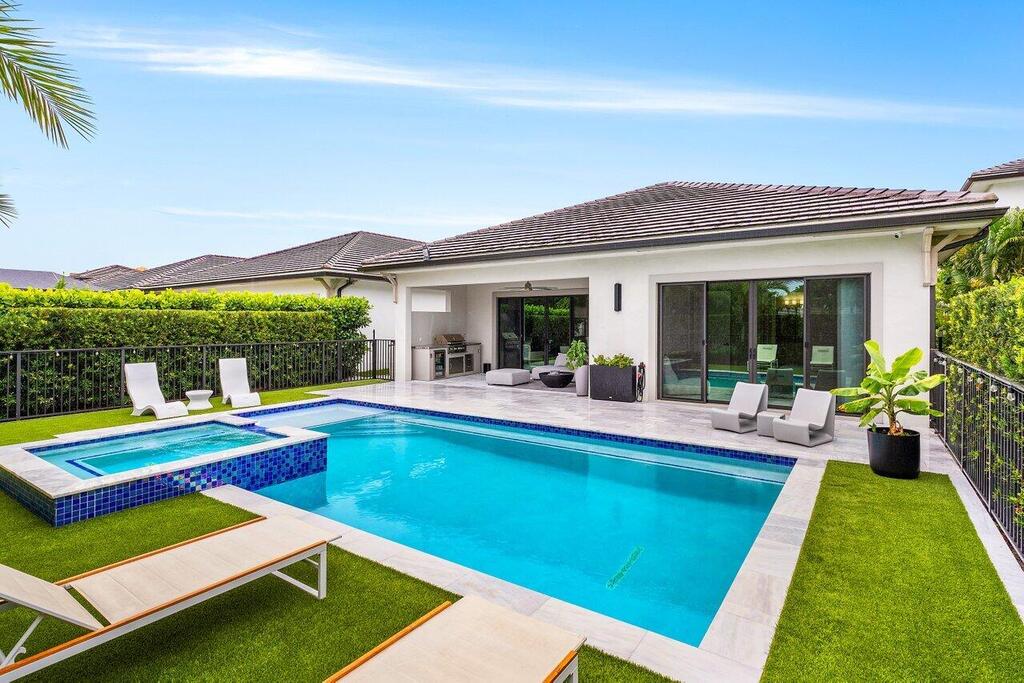 Location, Luxury, Lifestyle!3BR/3.5BA/2CG in the Residences at Banyan Cay, just steps from the new DUTCHMAN'S PIPE Golf Club.This open-concept home offers impact windows/doors, Hunter Douglas blinds, and luxury finishes throughout. The gourmet kitchen features upgraded appliances ideal for hosting or everyday ease.Enjoy a private backyard oasis with a marble deck, lush turf, and manicured hedges. The saltwater pool features a chiller/heater system, all of which is app-controlled. Pool maintenance, cable, and Wi-Fi are included in the monthly fee. Fully furnished home, except for mattresses.Minutes to Downtown West Palm, Tanger Outlets & more.