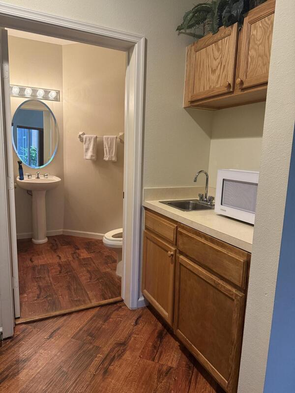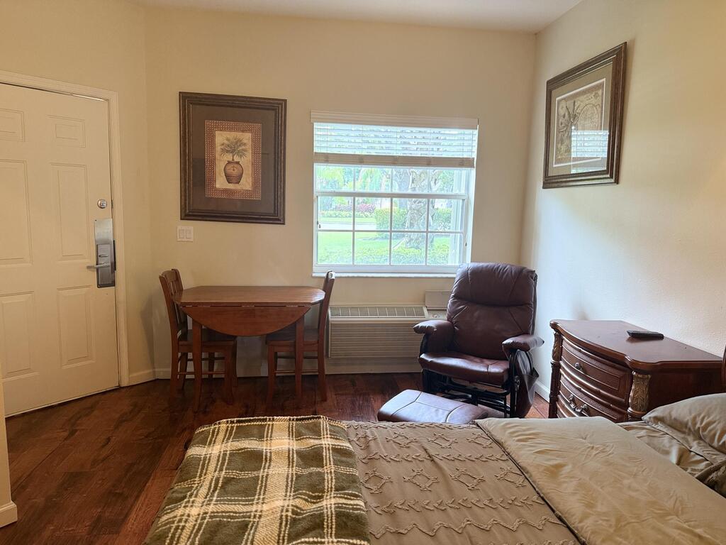 Live the vacation lifestyle every day in this beautifully appointed studio efficiency nestled in a premier golf course community! This bright and airy unit features an open-concept layout, a kitchenette including a microwave & refrigerator, and beautiful flooring throughout. Enjoy a private outdoor patio -- perfect for morning coffee and/or relaxation. UTILITIES INCLUDED: Water, cable, electric, internet. Brand new washer/dryer conveniently located right outside front door. (Laundry and mailbox shared with Landlord). Resort-style amenities include a sparkling swimming pool, tennis courts, clubhouse and more. Gated entry, 24/7 security, and beautifully landscaped grounds provide comfort, convenience, and peace of mind.